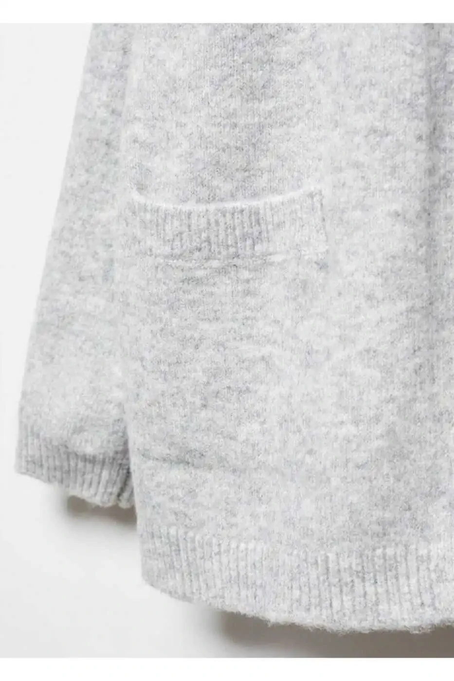 uzoq to'qilgan kardigan, mango, ayollar kardiganlari, to'qilgan mato, v shaklidagi bo'yinbog', yama cho'ntaklari, qulay