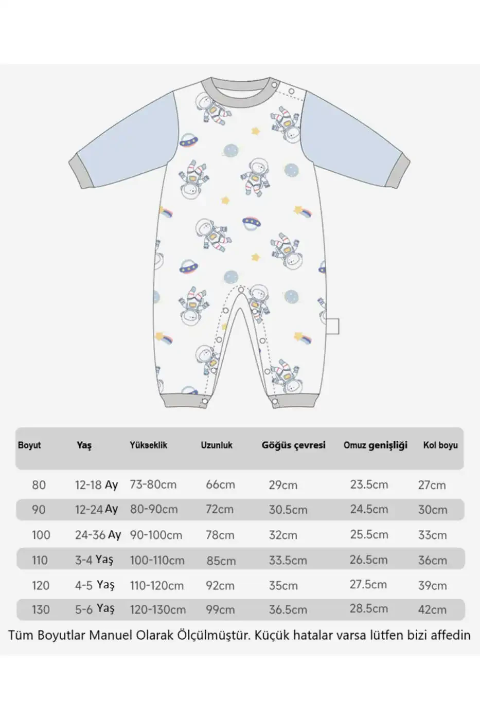 **Маҳсулот таърифи**Чақалоғингиз учун энг юмшоқ ва энг хавфсиз уйқу тажрибасини тақдим этувчи узун елимли чақалоқ/болалар костюм-пижамаси билан танишинг! 100% органик GOTS сертификатланган пахтадан тайёрланган бу тўрт фасл костюмча, чақалоғингизнинг нозик терисига энг юқори даражада ғамхўрлик қилади. Нафас олувчи тузилиши билан ҳар мавсумда қулай уйқуни таъминлайди. Спорт ва севимли дизайни билан кичкинтойларингизга замонавий кўриниш беради, қулай думалоқ ёқаси ва нервсимон манжетлари билан қулайликни янада оширади. 5А Физик антибактериал хусусияти ва деформациясиз ювиладиган тузилиши билан узоқ муддатли фойдаланиш кафолатини беради. 7 хил нақш танлови билан ҳар қандай завққа мос келадиган бу костюмча, осон кийиладиган ёноқ палата ва қорин соҳасидаги юқори сифатли попперлар туфайли оналарнинг ишини осонлаштиради. Ультра юмшоқ ва қулай тўқимаси билан чақалоғингизнинг кун бўйи завқли вақт ўтказишини таъминлайдиган бу костюмча, янги туғилган чақалоқларнинг нозик териси учун ҳам жуда мос келади. OEKO-TEX® STANDARD 100 сертификати билан саломатлигини хавф остига қўймасдан ишончли фойдаланишингиз мумкин бўлган бу костюмча, ўзимизнинг ишлаб чиқаришимиз бўлиб, брендимизнинг кафолати остида. 12-18 ой (80 см), 12-24 ой (90 см), 24-36 ой (100 см), 3-4 ёш (110 см), 4-5 ёш (120 см) ва 5-6 ёш (130 см) бўлган турли ўлчам танловлари билан кичкинтойларингиз учун идеал ўлчамни осонгина топишингиз мумкин. Акция нархида тақдим этилаётган бу имкониятдан фойдаланинг ва яқинларингизни хурсанд қилинг!**Маҳсулот хусусиятлари*** 100% органик GOTS сертификатланган пахта* Тўрт фасл фойдаланиш учун мос* Нафас олувчи ва нозик терилар учун мос* Қулай думалоқ ёқа* Нервсимон манжетлар* 5А Физик антибактериал* Деформациясиз ювиладиган* Осон кийиш учун ёноқ палата ва попперлар* 7 хил нақш танлови* OEKO-TEX® STANDARD 100 сертификатланган* 12-18 ой, 80 см / 12-24 ой, 90 см / 24-36 ой, 100 см / 3-4 ёш, 110 см / 4-5 ёш, 120 см / 5-6 ёш, 130 см ўлчам танловлари* Ультра юмшоқ ва қулай тўқима* Янги туғилган чақалоқлар учун мос* Ўзимизнинг ишлаб чиқаришимиз* Акция нархи**Қўшимча маълумотлар**Бу маҳсулот Naynes томонидан юборилади. Акция нархида сотилиши учун 10 донадан ортиқ захира мавжуд. Бир маҳсулотдан кўпи билан 10 дона буюртма бериш мумкин. 10 донадан ортиқ буюртмалар Trendyol томонидан бекор қилиниши мумкин. 15 кун ичида бепул қайтариш имконияти мавжуд. Батафсил маълумот учун қайтариш шартларини ўқиб чиқинг. Фойдаланишдан олдин ювинг. Паст ҳароратда ювинг, қўлда ювинг, оқартирманг. Катталар кийимларидан ёки қора рангли кийимлардан алоҳида ювинг. Зарурат бўлса, хлорсиз оқартиргичдан фойдаланинг. Паст ҳароратда қуритинг.