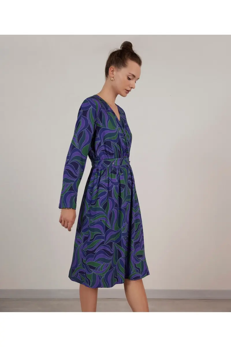 The V-neck detail makes your face look more prominent, making you more attractive, while the waist-hugging cut highlights your figure. The dress's soft fabric provides comfort all day long. The V-Neck Dress is the perfect choice to achieve a stylish look both in everyday life and on special occasions.