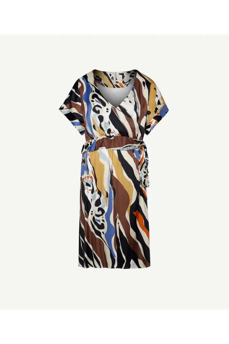 This dress, featuring a V-neck design for a graceful look, short sleeves for comfort, and a midi length for versatility, will become a staple in your wardrobe. Perfect for everyday wear and special occasions alike, this dress combines elegance with comfort thanks to its soft fabric and flattering fit.