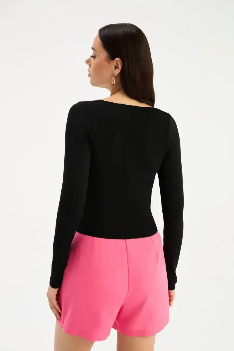 V Yaka Triko Crop - Siyah, günümüz modasının trendlerini yakalayan, aynı zamanda zamansız bir parça olma özelliği taşıyor. Derin V yakası, feminen bir görünüm sunarken, crop kesimi modern ve dinamik bir hava katıyor. Siyahın asaleti, her türlü alt giyimle mükemmel bir uyum yakalamanızı sağlayarak, kombin yapma özgürlüğünüzü artırıyor. İster yüksek bel bir pantolonla şık bir görünüm elde edin, ister eteklerle daha romantik bir tarz yaratın; bu crop top, her durumda stilinizi en iyi şekilde yansıtmanıza yardımcı olacak.Ürünün triko dokusu, teninize yumuşak bir dokunuş sunarken, gün boyu konforlu bir kullanım deneyimi yaşatır. Hafif ve nefes alabilen yapısı sayesinde, sıcak havalarda bile rahatlıkla tercih edebilirsiniz. Kaliteli malzeme kullanımı, uzun ömürlü bir ürün sahibi olmanızı garanti ederken, renk solması veya deformasyon gibi sorunlarla karşılaşma olasılığınızı en aza indirir.V Yaka Triko Crop - Siyah, sadece şık değil, aynı zamanda çok yönlü bir parça. Günlük kullanımın yanı sıra, özel davetlerde veya gece dışarı çıkarken de rahatlıkla tercih edebilirsiniz. Aksesuarlarınızla ve diğer giyim parçalarınızla kolayca kombinleyerek, farklı tarzlar yaratmanız mümkün. Bir ceket veya hırka ile tamamlayarak daha resmi bir görünüm elde edebilir, spor bir şortla kombinleyerek daha casual bir tarz yaratabilirsiniz.Bu crop top, sadece stil sahibi olmak isteyenler için değil, aynı zamanda rahatına düşkün olanlar için de ideal bir seçenek. Gün boyu hareket özgürlüğünüzü kısıtlamadan, şıklığınızı korumanıza yardımcı olur. İster evde dinlenirken, ister arkadaşlarınızla buluşurken, isterse de işe giderken, V Yaka Triko Crop - Siyah her zaman yanınızda olacak.Gardırobunuzun olmazsa olmazı olacak bu crop top, sizi her ortamda bir adım öne taşıyacak. Siyahın zamansızlığı ve trikonun rahatlığı bir araya gelerek, stilinizi ve kişiliğinizi en iyi şekilde yansıtmanıza olanak sağlayacak. V Yaka Triko Crop - Siyah ile kendinizi özel hissedin ve şıklığınızla göz kamaştırın!