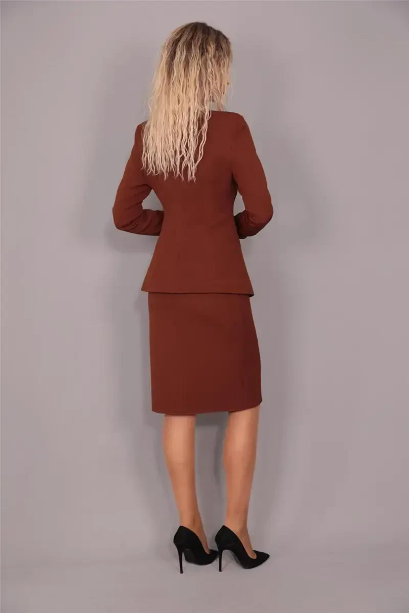Şıklığı ve profesyonelliği bir araya getiren V Yaka Uzun Kurumsal Ceket & Kalem Etek Takımımız, iş hayatınızda ve özel günlerinizde size eşsiz bir görünüm kazandıracak. Acı kahve renginin sıcaklığı ve modern kesimi ile dikkat çeken bu takım, gardırobunuzun vazgeçilmez parçası olmaya aday. ÖNDER ÖZSOY tarafından titizlikle tasarlanmış ve üretilmiş olup, kalite ve şıklığı bir arada sunmaktadır. Bu takım, birden fazla satıcı tarafından sunulabilmekle birlikte, en uygun fiyat ve koşulları sunan satıcıları değerlendirerek size ulaştırılmaktadır. Kurumsal siparişleriniz için farklı limitler belirlenebilirken, bireysel siparişlerde 10 adet ile sınırlıdır. Üründen memnun kalmadığınız takdirde 15 gün içinde ücretsiz iade imkanı sunulmaktadır. Kendi üretimimiz olan bu takım, V yaka kısa ceket ve kalem etek olmak üzere iki parçadan oluşmaktadır. Ceketin ön kısmında gizli agraf kullanılmış olup, şık ve zarif bir görünüm sunar. Kalem etek ise yandan fermuarlı olup, vücut hatlarınızı kusursuz bir şekilde ortaya çıkarır. Acı kahve tonu, farklı kombinler yapmanıza olanak tanırken, takım olarak kullanıldığında da kusursuz bir uyum sağlar. Stüdyo çekimlerinde renkler ışık farklılığından dolayı değişiklik gösterebilir, ancak ürünün gerçek rengi oldukça doygun ve şıktır. Profesyonel hayatınızda veya özel davetlerde kendinizi güvende ve şık hissetmek istiyorsanız, bu takım tam size göre. Kumaşın kalitesi ve işçiliği sayesinde uzun yıllar boyunca kullanabileceğiniz bu takım, gardırobunuzun en değerli parçalarından biri olacaktır. Bu takım, modern kadının zarafetini ve gücünü temsil ederken, aynı zamanda rahatlığı da ön planda tutar. İş görüşmelerinden özel davetlere kadar her ortamda rahatlıkla tercih edebileceğiniz bu takım, şıklığınızı her zaman bir adım öne taşıyacaktır. Unutmayın, şıklık detaylarda gizlidir ve bu takım, her detayıyla özenle tasarlanmıştır.