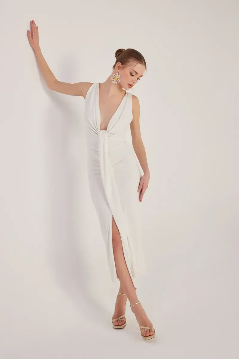 V bo'yinli yirtiq astarli uzun Kate ko'ylagi, nafislik va nafosatni birlashtirgan, maxsus kunlaringizda va ziyofatlarda ko'zingizni qamashtiradigan dizaynga ega. Holly Lolly kafolati bilan taqdim etilgan ushbu ko'ylak zamonaviy kesimi va diqqatga sazovor detallari bilan shkafingizning ajralmas qismiga aylanishga nomzod. Uzun kate bo'yi harakat erkinligingizni cheklamagan holda zamonaviy ko'rinishni ta'minlaydi, yirtiq detali esa ko'ylakka zamonaviy teginish qo'shadi. V bo'yinli kesim, dekolteni nafis tarzda ta'kidlab, ayollik siluetini yaratishga yordam beradi. Astarli tuzilishi tufayli u ichki kiyimni ko'rsatmaydigan, qulay va qulay foydalanishni taklif etadi. Oq rangi bilan olijanoblikni ifodalovchi ushbu ko'ylak turli xil aksessuarlar bilan osongina birlashtirilishi mumkin, bu esa har foydalanishda turli xil uslub yaratishga imkon beradi. Baland poshnali oyoq kiyimlar bilan zamonaviy ziyofat ko'rinishini yaratasizmi yoki sandal bilan qulayroq yozgi kombinatsiyani yaratasizmi, V bo'yinli yirtiq astarli uzun Kate ko'ylagi har qanday muhitda uslubingizni namoyish etish imkonini beradi. Modeldagi XS o'lchami, modelning bo'yi 1,75 sm, ko'krak qafasi 79 sm, bel 58 sm va soni 88 sm. Ushbu o'lchamlar ko'ylakning sizda qanday ko'rinishi haqida tasavvurga ega bo'lishingizga yordam beradi. Maxsus matosi tufayli uzoq umr ko'rishni taklif qiladigan ushbu ko'ylak to'g'ri parvarish bilan birinchi kundagi nafisligini saqlab qoladi. Nafosat va qulaylikni bir vaqtning o'zida qidiradigan ayollar uchun ideal tanlov bo'lgan V bo'yinli yirtiq astarli uzun Kate ko'ylagi shkafingizning eng maxsus qismlaridan biriga aylanishga tayyor.