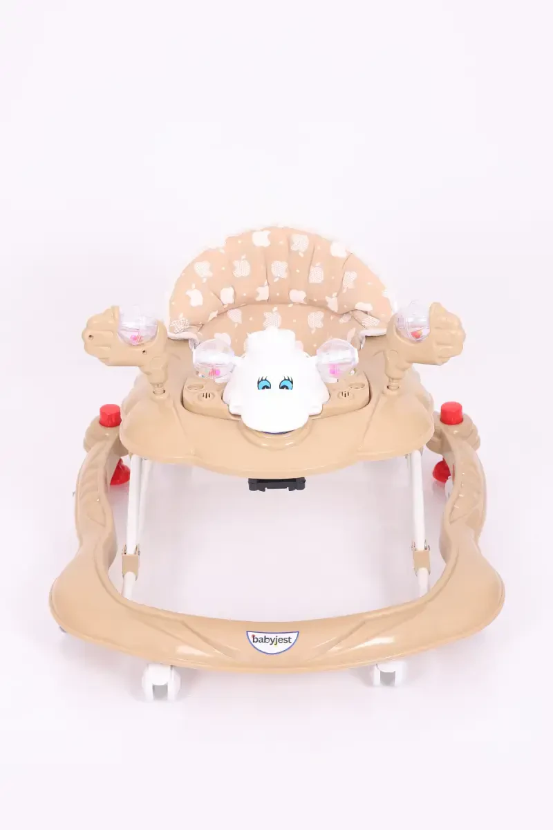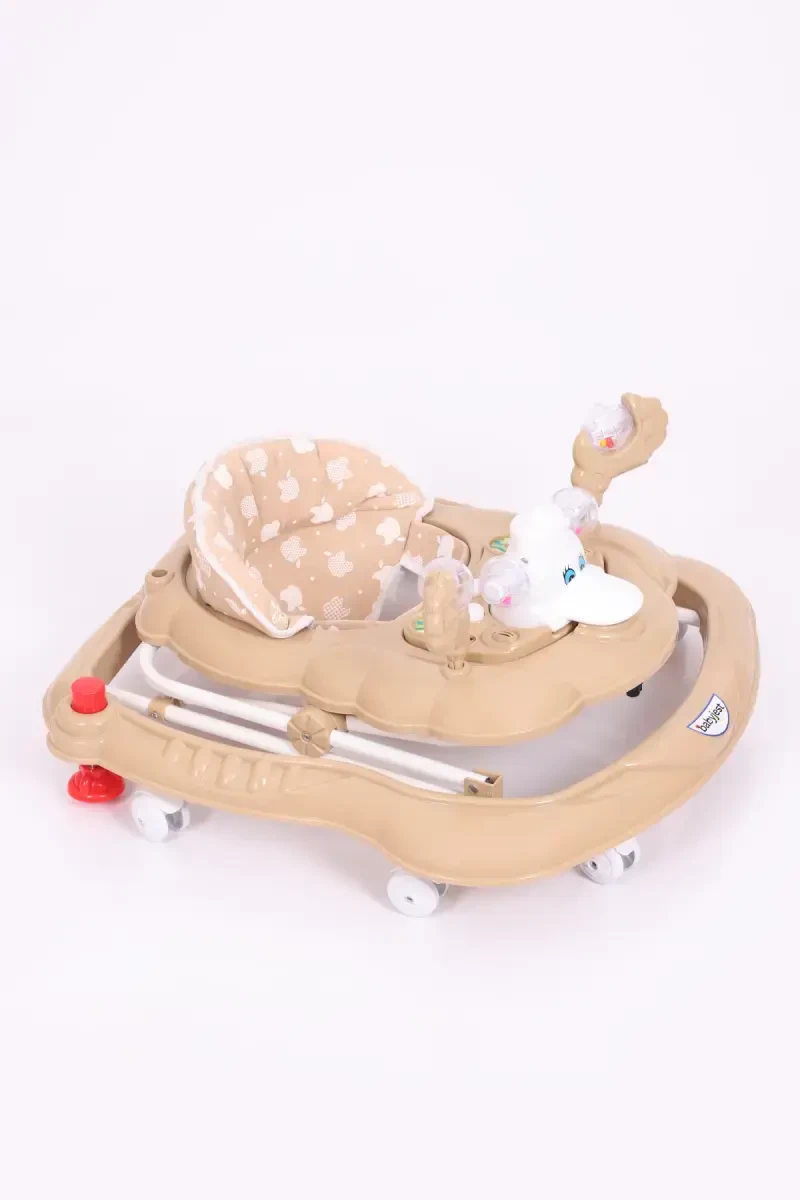 Help your baby take their first steps safely with the Vak Vak Stoppered Musical Walker! This walker, which draws attention with its full brown stylish design, supports your baby's development while also allowing them to have a fun time. Thanks to its height-adjustable feature, it can be easily adapted to your baby's height, thus allowing them to be in a correct and comfortable position at all times. The musical and toy front panel supports your baby's sensory development and helps them improve their hand-eye coordination. Colorful and various toys attract your baby's attention and keep them entertained for a long time. Designed with safety in mind, this walker has silicone stoppers. These stoppers automatically stop the walker when it approaches dangerous areas such as stairs or thresholds, maximizing your baby's safety. 360-degree swivel wheels allow your baby to move comfortably and easily turn in the desired direction. This feature supports your baby's desire to explore and allows them to move freely. The walker takes up little space when not in use and can be easily stored thanks to its easy folding feature. This feature provides a great advantage, especially for those living in small houses. The seating area, which is produced using high-quality fabric, does not harm your baby's skin and provides comfort even in long-term use. The wide seating area allows your baby to sit and move comfortably. The Vak Vak Stoppered Musical Walker helps your baby take their first steps safely while providing a fun and educational experience. This walker, which is both stylish and useful with its full brown color, is a great option to contribute to your baby's development. Designed with your baby's safety and comfort in mind, this walker also makes parents' lives easier with its practical use. Produced with Vak Vak quality, this walker is long-lasting and durable. If you are looking for a reliable friend to accompany your baby in their first steps, the Vak Vak Stoppered Musical Walker is just for you!