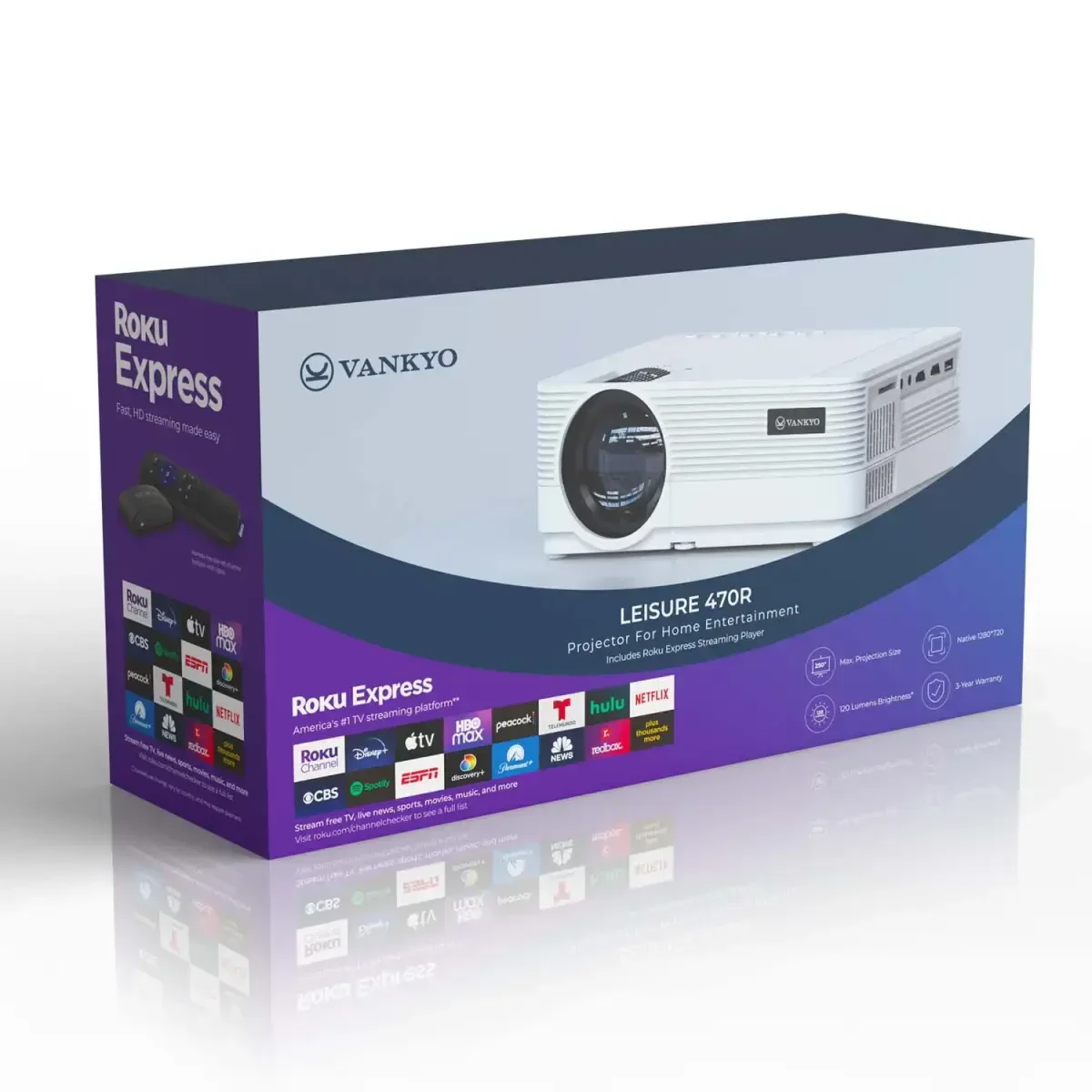 VANKYO Leisure 470 HD Mini Projector with Roku Express Streaming Player, 50000 Hrs LED Life, 240'' Display Screen for Home Theater & Outdoor Movies
