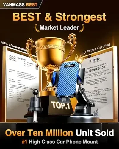 The VANMASS Military-Grade Certified Car Phone Holder Mount is the newest and strongest phone holder of 2024, designed to keep your phone secure and stable even in the most demanding conditions. With over 60LBS of suction power, you can confidently use your device without worrying about any bumps, shocks, or vibrations.