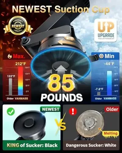 The VANMASS Pro Version is a premium car phone holder that delivers reliability and versatility. Its powerful super suction cup securely holds your phone in place, providing a strong grip on any surface.