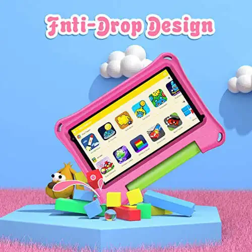 Planshet foydalanish paytida sodir bo'lishi mumkin bo'lgan tushishlarga va zarbalarga chidamli, bolalar uchun qulay qopqoq bilan birga keladi. Bundan tashqari, ikkita kamera funksiyasi farzandlaringizning fotosuratga tushishi va video yozib olishini ta'minlaydi, bu esa ularning qiziqarli daqiqalarini abadiylashtiradi.