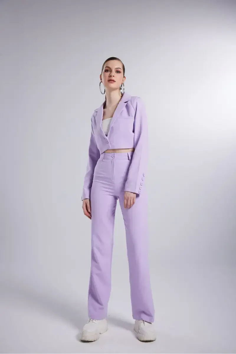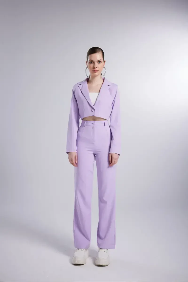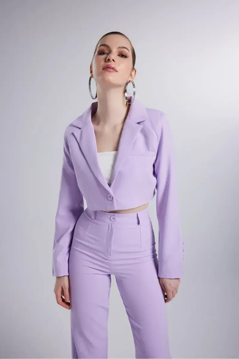 Gardırobunuzun en şık ve çok yönlü parçası olmaya aday, vatkalı crop model uzun kol blazer panky ceket ile tanışın. Bu lila renkli blazer, modern kesimi ve dikkat çekici detaylarıyla her kombininize sofistike bir dokunuş katacak. İster günlük kullanımda, ister özel bir davette, bu ceketle her zaman stil sahibi görüneceksiniz. Yüksek kaliteli dokuma kumaşı sayesinde gün boyu konforlu bir kullanım sunarken, fitilli dokusu cekete benzersiz bir hava katıyor. Standart kalıbı, farklı vücut tiplerine kolayca uyum sağlayarak herkesin üzerinde şık durmasını garanti eder. Vatkalı omuzları, güçlü ve modern bir siluet oluşturmanıza yardımcı olurken, uzun kolları sayesinde mevsim geçişlerinde ideal bir seçimdir. Lila rengin canlılığı, her türlü kıyafetinizle kolayca kombinlenebilir ve tarzınıza renk katar. Crop kesimi, ceketi daha genç ve dinamik bir hale getirirken, blazer ceket yaka tasarımı klasik şıklığı modern bir dokunuşla birleştirir. Bu ceket, sadece görünümüyle değil, aynı zamanda kullanım kolaylığıyla da öne çıkıyor. Yıkama talimatlarına uygun şekilde bakım yaparak ceketin formunu uzun süre koruyabilir, kolayca temizlenebilir özelliği sayesinde her zaman bakımlı görünebilirsiniz. İster jeanlerle casual bir tarz yaratın, ister etek veya elbiseyle daha şık bir kombin oluşturun, bu blazer ceket her zaman doğru seçim olacaktır. Gardırobunuzun vazgeçilmez parçası olacak bu ceket ile tarzınızı her ortamda yansıtın.