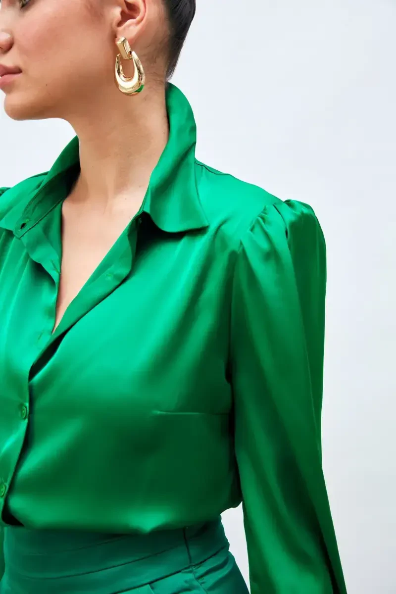 Vatkalı Saten Gömlek - Yeşil, şıklığı ve rahatlığı bir araya getiren özel bir tasarıma sahiptir. Bu göz alıcı yeşil renkli saten gömlek, Sateen kalitesiyle sunulmaktadır ve gardırobunuzun vazgeçilmez bir parçası olmaya adaydır. Vatkalı detayları sayesinde omuzları daha belirgin ve dik göstererek, duruşunuza zarif bir dokunuş katar. Günlük kullanım için ideal olan bu gömlek, modern ve sofistike bir görünüm elde etmenizi sağlar. Düğmeli kapama sistemi sayesinde kolayca giyilebilir ve çıkarılabilir. Farklı kombinlerle rahatlıkla uyum sağlayabilen bu gömlek, ister iş hayatında ister günlük aktivitelerinizde şıklığınızı ön plana çıkarır. %100 polyester materyalden üretilmiş olması, gömleğin uzun ömürlü ve dayanıklı olmasını garanti ederken, aynı zamanda kolayca ütülenebilme özelliği sayesinde pratik bir kullanım sunar. Uzun kollu tasarımı, serin havalarda bile konforlu bir kullanım sağlarken, saten dokuma tipi gömleğe eşsiz bir parlaklık ve lüks bir görünüm kazandırır. Bu özellikleriyle dikkat çekici ve zarif bir stil yaratmanıza olanak tanır. Casual tarzı benimseyenler için mükemmel bir seçenek olan bu gömlek, ekoteks sertifikasıyla da sürdürülebilir moda anlayışını destekler. Dokuma kumaş tipi sayesinde kaliteli bir dokunuş sunarken, regular kalıbı vücuda rahatça oturur ve gün boyu konforlu bir kullanım sağlar. Regular boy kesimi, farklı vücut tiplerine uyum sağlayarak her yaştan kullanıcıya hitap eder. Düz renk ve deseni, zamansız bir şıklık sunarken, saten materyali sofistike detayları ön plana çıkarır. Basic siluetiyle sade şıklığı sevenler için ideal olan bu gömlek, gömlek yakası detayıyla da hem resmi hem de günlük ortamlara uyum sağlayabilen zarif bir görünüm sunar. Yeşil rengin canlılığı ve satenin lüks dokusu bir araya gelerek, bu gömleği benzersiz kılar. Gardırobunuzda mutlaka bulunması gereken bu parça, şıklığınızı bir üst seviyeye taşıyacak.