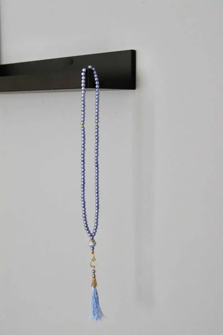 Ручная работа синие жемчужные четки. От имама вниз расположены кисточки в форме вав. Средняя длина 25 см. Подходит для оптовой продажи. Отправляется 20 штук.