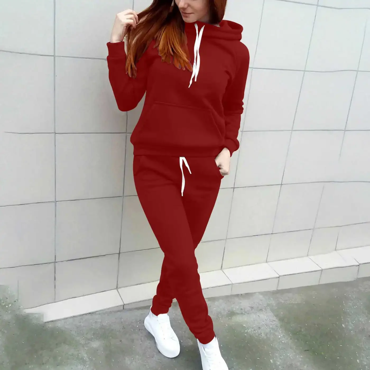 women's tracksuit, hooded tracksuit, jogger tracksuit, wine red, fall outfits, casual tracksuit, 2-piece tracksuit, long sleeve sweatshirt, tracksuit with pockets, prime deals