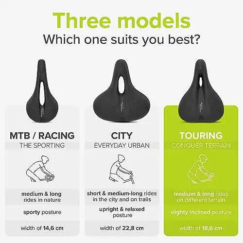 HIGH-QUALITY MEMORY FOAM - The special foam layer of the saddle clings perfectly to your body and ensures a comfortable seat due to its decompression - no matter if you prefer a regular bicycle or an e-bike! FUNCTIONAL AIR VENTILATION - The particular slot of the unisex bike seat ensures constant air circulation - as a result, unpleasant sweating in your private areas is no longer an issue! ONE HUNDRED PERCENT WATERPROOF - The Velmia saddle has a width of 7.3 inches - not only is this the absolutely perfect fit, but it is completely waterproof thanks to the additional welded seams! MADE FOR YOUR RIDING POSITION - There are three specific models of the bicycle saddle, so you can choose the Velmia bike seat depending on your individual riding position and riding style needs! CUSTOMER-ORIENTED START-UP - Velmia has an English-speaking customer service department - order today and get the needed saddle clamp and an illustrated set of instructions for the easiest mounting ever!