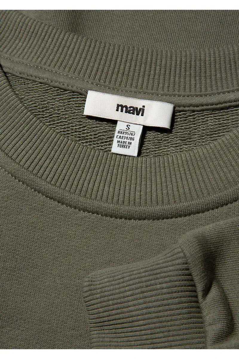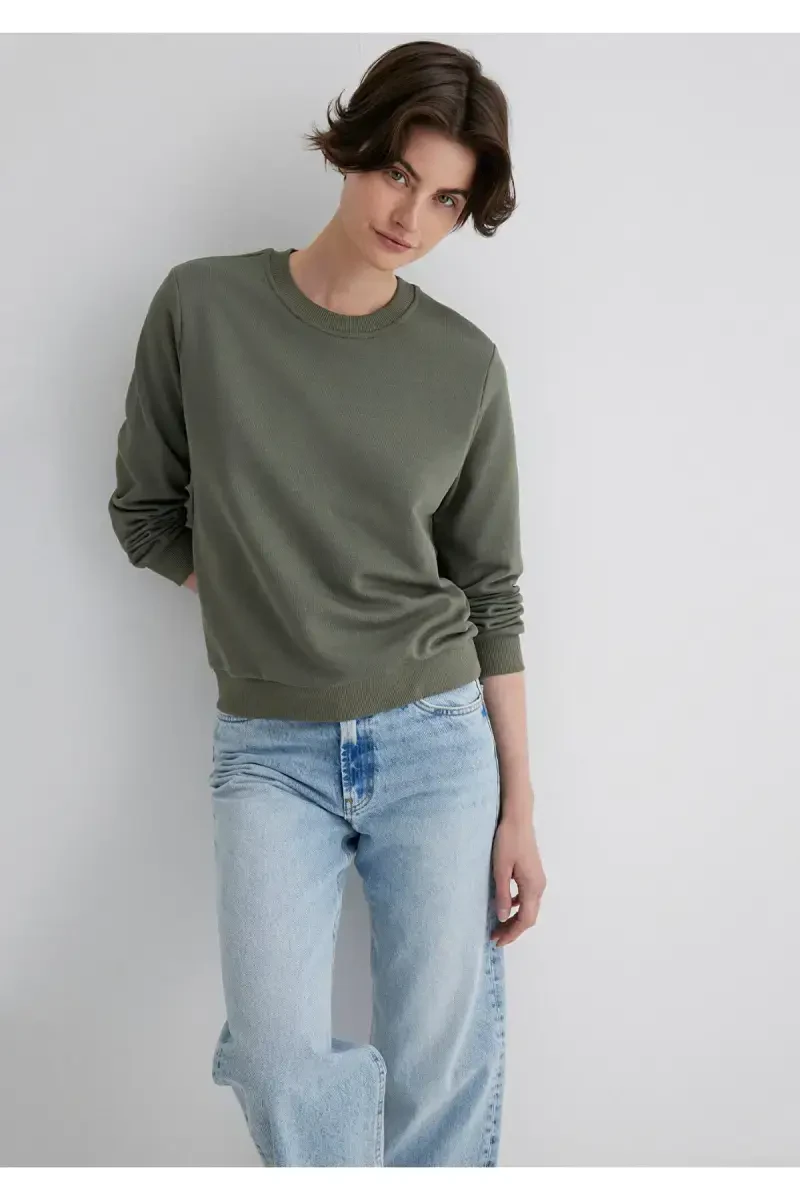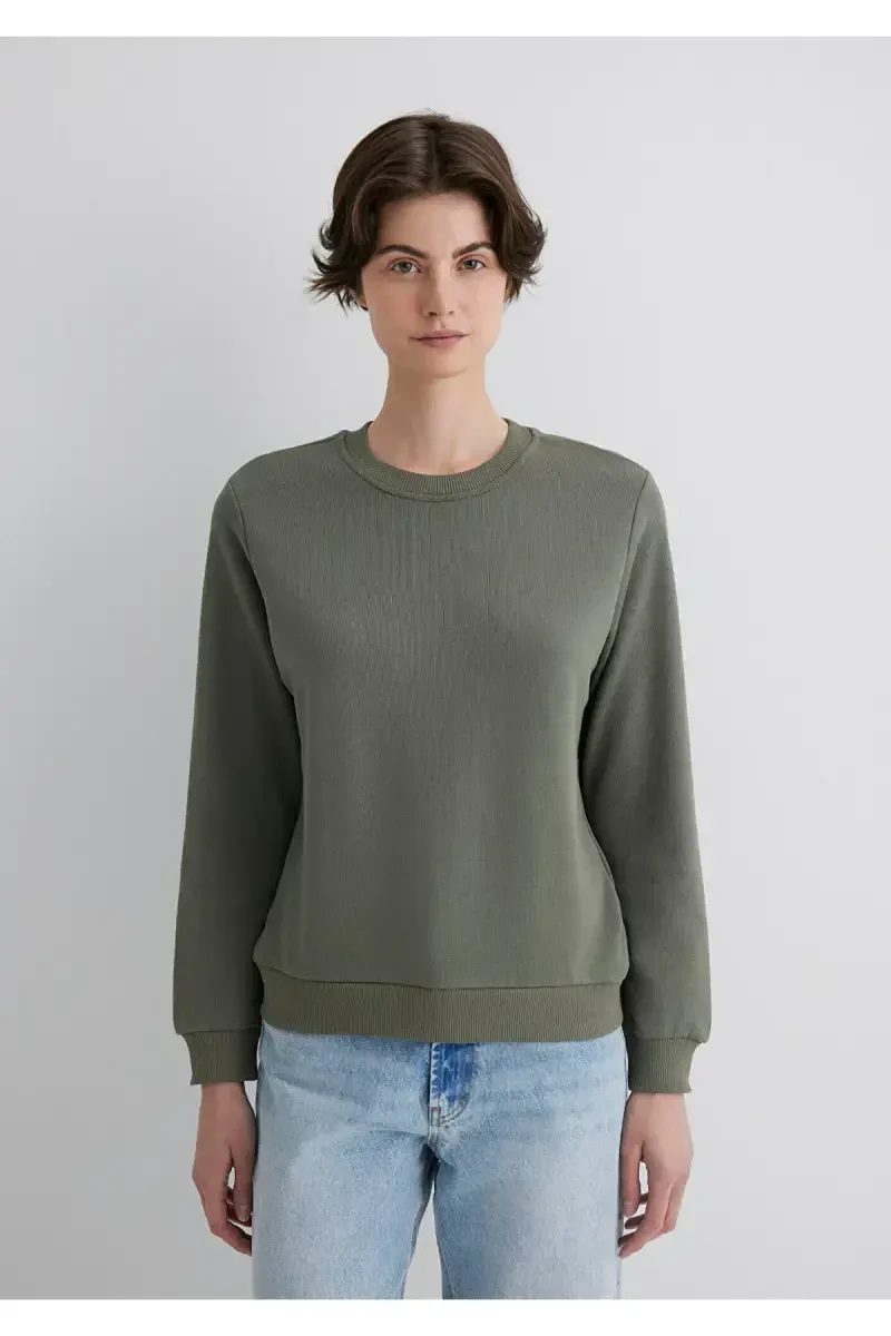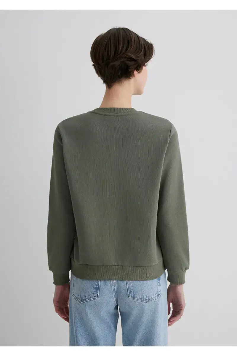 Bisiklet yoqali yashil svitshot | Paxtali, uzun yengli, bosmasiz
