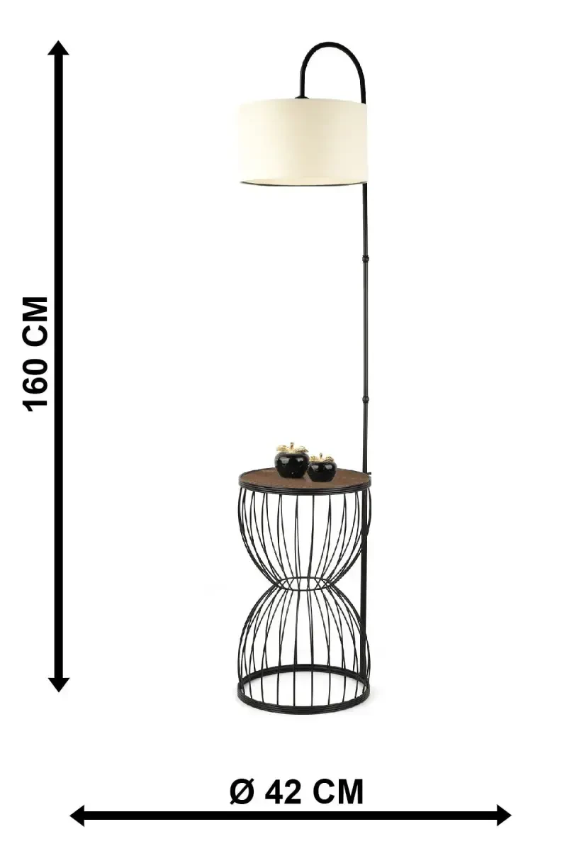Venezia Floor Lamp with Table: Stylish Lighting and Practical Table in One! Black-Walnut Design, Cream Shade. A Modern Touch to Home & Office Decoration.