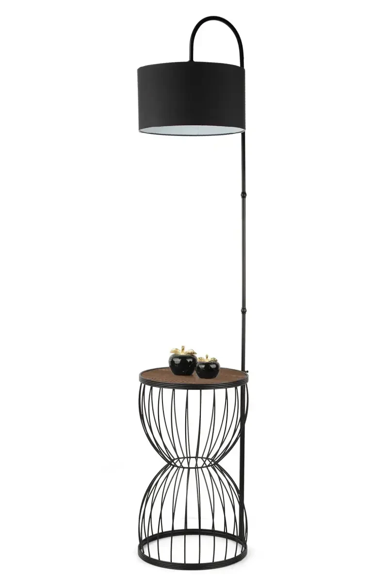 Venezia Sehpa Lambader | Siyah Ceviz Ahşap & Siyah Şapka | Lambader ve Sehpa Bir Arada!