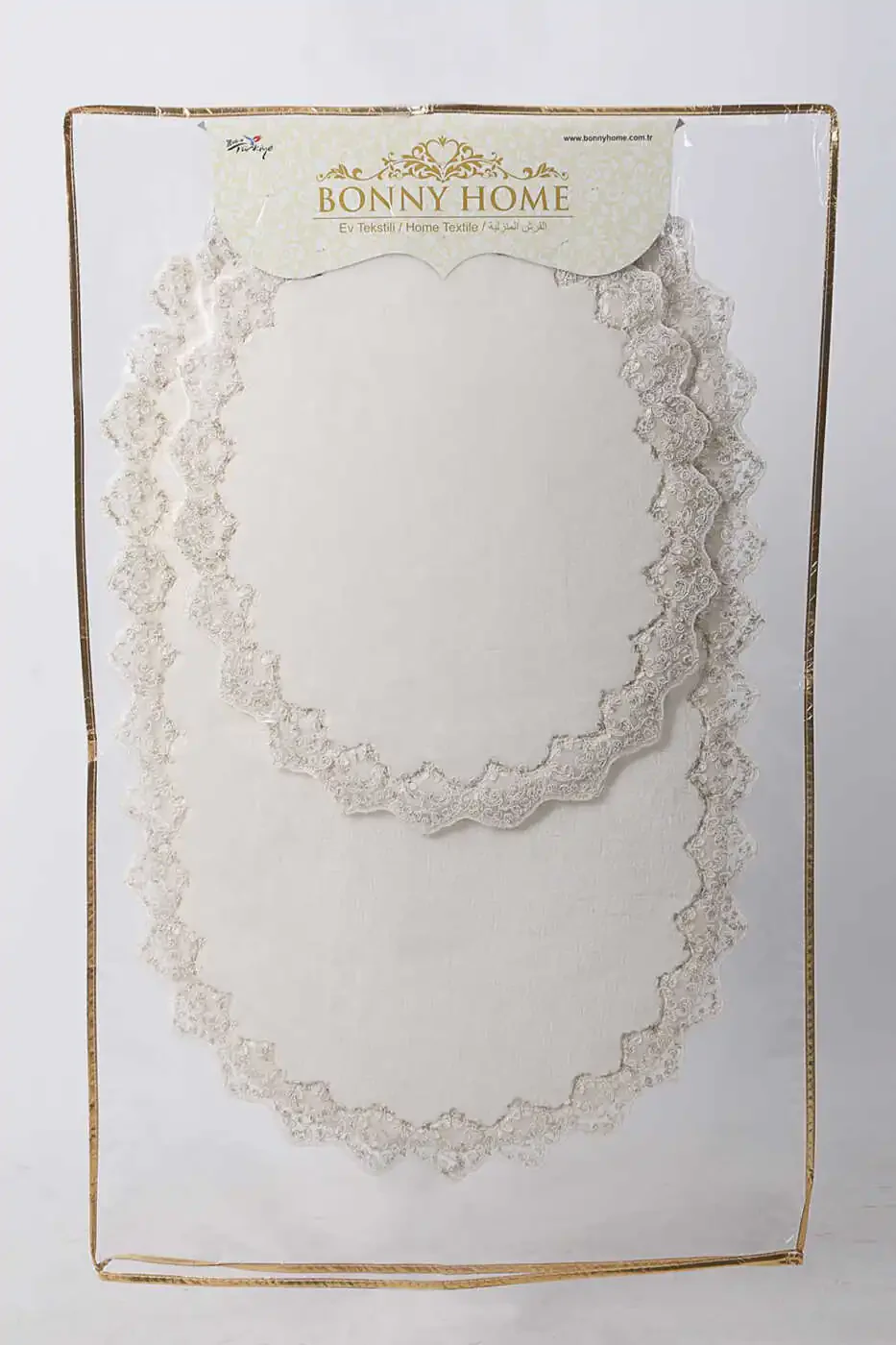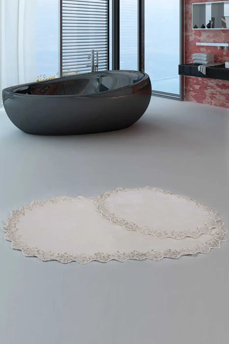 Meet the Venus 2-Piece Cream Bridal Lace Bath Mat Set, which will add elegance and comfort to your bathroom! Produced with Relax Carpet quality, this magnificent set will transform your bathroom into a spa-like atmosphere with its soft texture and elegant design. With a large mat measuring 105x65 cm and a small mat measuring 75x55 cm, this set will cover all the areas you need, making it an ideal choice for those preparing their trousseau. The elegance of French lace, the softness of plush fabric, and the non-slip leather base of the Venus set will maximize both your aesthetic pleasure and comfort. Its practical use and easy-to-clean features will greatly facilitate your daily life, and this special set will become an indispensable part of your bathroom for many years to come. The Venus set, which can also be chosen as a gift, offers you the opportunity to present a stylish and useful gift to your loved ones. Order now for a clean and stylish bathroom and experience this luxurious experience. Designed for an unforgettable bathroom experience, the Venus set will captivate you with its quality and elegance.