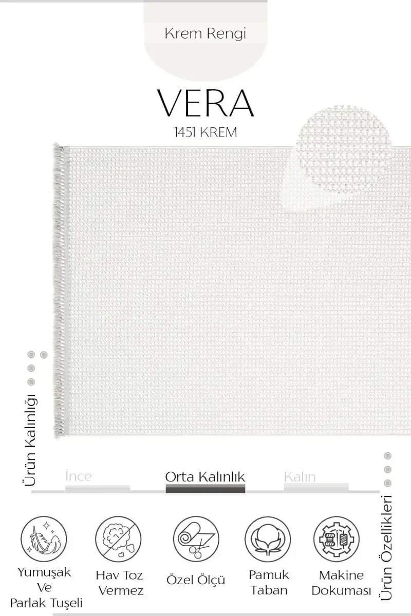 Vera 1451 Cream Soft Textured Rug is a unique woven rug that will add warmth and elegance to every corner of your home. This versatile rug, which you can use in any area from your living room to your kitchen, from your hallway to your bedroom, adds value to your living spaces with its stylish design and comfortable texture. Vera 1451, produced with machine weaving technology, attracts attention with its long-lasting and durable structure. The noble and timeless stance of cream color easily adapts to all kinds of decoration styles and adds a fresh atmosphere to your spaces. Vera 1451, which massages your feet while walking on it thanks to its soft texture, is an ideal choice especially for families with children and pet owners. This rug, which you can also choose as a cut runner, offers solutions suitable for every space with its different size options. Whether you want to add color to a long hallway or create a warm atmosphere in the kitchen, you can easily create the living space of your dreams with Vera 1451.Vera 1451, which combines modern and classic patterns, is not just a rug, but also a work of art that you add to your home. The neutral and soothing effect of cream color helps you create a peaceful atmosphere in your home. Moreover, it offers practical use thanks to its easy-to-clean feature. Thanks to its stain-resistant structure, it is resistant to accidents that may occur in daily use and maintains its original appearance for many years.Bring style and comfort to every corner of your home with Vera 1451. This rug is not just a floor covering, but also a detail that reflects your lifestyle. With its soft texture, eye-catching design and durable structure, Vera 1451 is the perfect choice for your home. Choose Vera 1451 to change the atmosphere of your home and increase your quality of life. Remember, a rug is not just a rug; It is a piece that reflects the soul of your home. Catch that spirit in your home with Vera 1451.
