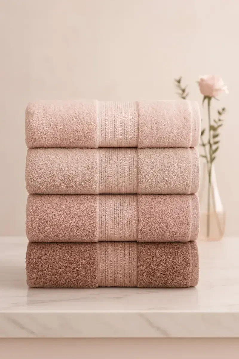 Bring luxury and comfort to your bathroom with the Veronica Small 4-Piece Towel Set. This special set will take your bathroom experience to the next level with its high-quality material and elegant design. Each towel is made of 100% cotton yarn and provides a soft touch to your skin. It provides comfort by gently drying your skin without irritating it.Veronica Small towels stand out not only for their softness but also for their superior absorbency. Thanks to the rapid absorption of water, you will feel dry in a short time after showering or washing your hands. This feature saves you time, especially on busy days.These 50x90 cm towels are both practical and useful thanks to their ideal size. You can use it as a face towel, hand towel or hair towel, as well as a perfect option for your guests. The 4 towels in the set will be sufficient for all members of your family.The warm and inviting tone of the powder color adds a sophisticated touch to your bathroom. This color, which easily adapts to modern or classic decoration styles, enriches the overall atmosphere of your bathroom. You can also easily combine it with other bathroom textile products.Veronica Small towels are user-friendly with their easy care. Thanks to its machine washable feature, cleaning is very practical. It dries quickly after washing and retains its original softness. Thanks to its long-lasting structure, you can enjoy it for years. Moreover, its colors do not fade and do not deform.This towel set can be a great gift option not only for your bathroom but also for your loved ones. It is an ideal choice for a housewarming gift, a gift for newlyweds or to make your loved ones happy on special occasions. Its stylish packaging and high-quality content show that you value the person you are giving it to.Experience both elegance and comfort in your bathroom with the Veronica Small 4-Piece Towel Set. Enjoy soft and absorbent towels while relieving the tiredness of the day. This special set, which will make your bathroom experience unforgettable, is waiting to meet you now. Add value to your life with Veronica Small, which offers quality and elegance together. Feel the same freshness and softness with every use. Veronica Small will be indispensable for your bathroom pleasure.