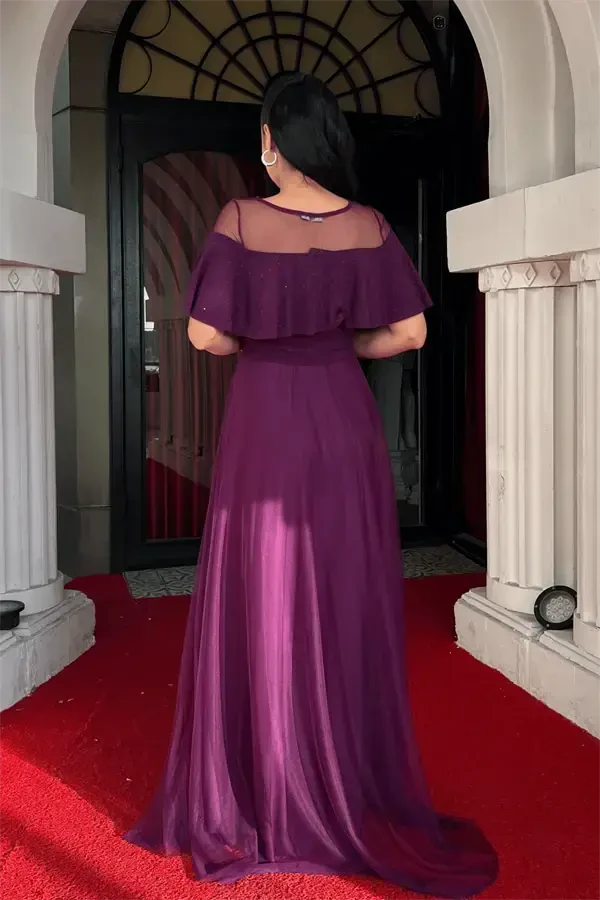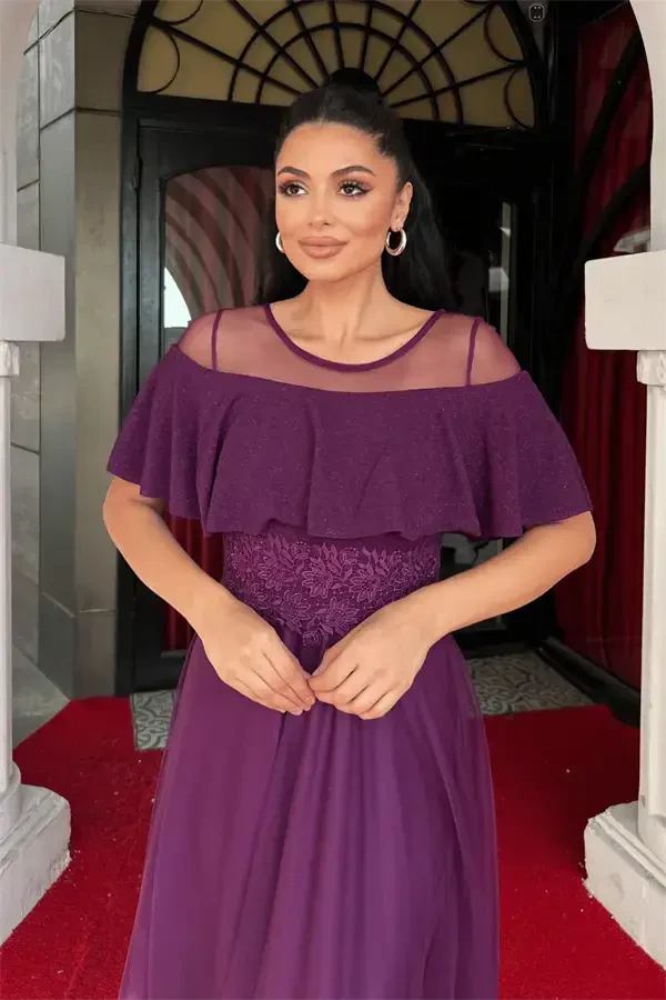 Произведите незабываемое впечатление в особые дни с вечерним платьем с блестящей верхней тканью, нижней тюлевой тканью - БАКЛАЖАНОВЫЙ ФИОЛЕТОВЫЙ, сочетающим в себе ослепительную элегантность и изящество. Это великолепное вечернее платье с блестящей верхней тканью и легкой, воздушной тюлевой тканью внизу позволит вам выглядеть так, словно вы только что сошли со страниц сказки. Насыщенный и благородный оттенок баклажанового фиолетового цвета подойдет к любому цвету кожи и сделает вас еще более привлекательной.Безупречный дизайн платья наилучшим образом подчеркивает изгибы вашего тела, не жертвуя при этом вашей свободой движений. Это вечернее платье, которое вы можете с легкостью надеть на любое особое мероприятие, от светских вечеринок до свадеб, от помолвок до выпускных вечеров, поднимет ваш стиль на новый уровень.Длина изделия от плеча до подола 150 см создает элегантный силуэт, а легкость тюлевой ткани обеспечивает комфортное ношение в течение всего дня. Блеск блестящей ткани и романтичная текстура тюлевой ткани придают вечернему платью неповторимую атмосферу, а в сочетании с завораживающим оттенком баклажанового фиолетового оно превращается в настоящее произведение искусства.Это вечернее платье выделяется не только своим внешним видом, но и качеством. Подкладка предотвращает просвечивание и прямой контакт с кожей, поэтому вы будете чувствовать себя комфортно в течение всего дня. Благодаря небольшой эластичности оно идеально садится по фигуре и не сковывает движений. Цельный крой облегчает выбор размера и помогает добиться идеальной посадки.С этим особым дизайнерским вечерним платьем, которое обязательно должно быть в вашем гардеробе, вы привлечете всеобщее внимание в любой обстановке и очаруете своей элегантностью. Вечернее платье с блестящей верхней тканью, нижней тюлевой тканью - БАКЛАЖАНОВЫЙ ФИОЛЕТОВЫЙ - это идеальное сочетание стиля и комфорта, и оно станет одним из самых ценных предметов, которые будут сопровождать вас в особые дни. Собирая незабываемые воспоминания, вы будете очарованы волшебством этого вечернего платья и почувствуете себя более особенной, чем когда-либо.