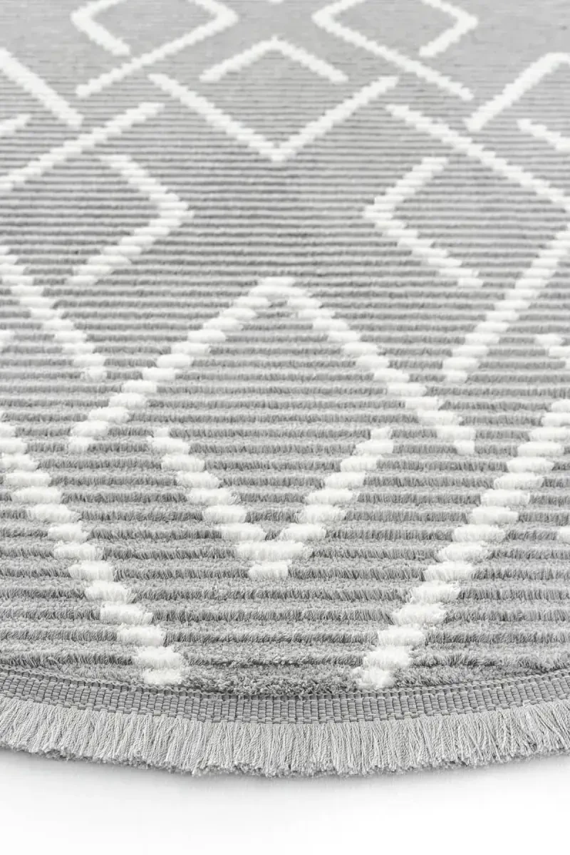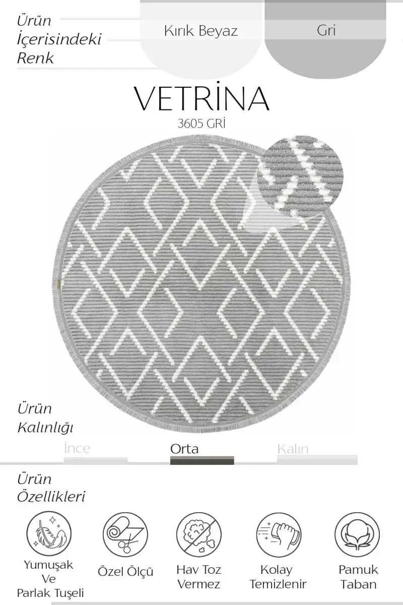 Vetrina 3605 Gri Yumuşak Doku Halı Kilim Salon Mutfak Koridor Kesme Yolluk Yuvarlak Makine Halısı-Gri 1
