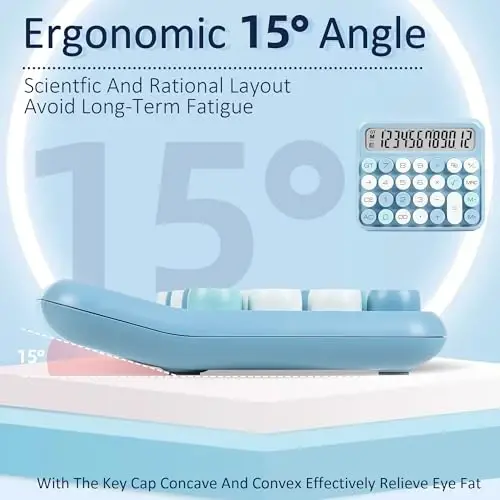 VEWINGL Mechanical Switch Calculator is a high-performance and stylish calculator designed for your daily life and basic office tasks. This calculator stands out with its 12-digit wide LCD screen and special key design that mimics the mechanical key feel. Every time you press the keys, you experience the satisfying click sound and feel of mechanical keyboards, making calculations more enjoyable. With its large keys and sweet colors, it appeals to your eyes and provides ease of use. The 12-digit wide LCD screen displays numbers clearly and legibly. The vertical back design and 15-degree angle minimize eye strain even during long-term use. VEWINGL Mechanical Switch Calculator is not just a calculator, but also a stylish accessory that adds a retro touch to your workspace. Its typewriter-style clean lines and round keys make a nostalgic reference to the past while bringing modern technology together. The thick body is suitable for both desktop use and hand-held carrying. The round keycaps ensure that your fingers fit comfortably and prevent fatigue during long-term use. Its spring-loaded ergonomic design supports your wrist for a more comfortable experience. With various color options such as yellow and black, pink and white, green and white, white and black, the VEWINGL Mechanical Switch Calculator appeals to every taste. Thanks to its small and portable design, it can be easily used at home, school, office, or store. In addition to basic mathematical operations, it also supports various financial functions. It is an excellent choice for adults and students. The stylish gift box design offers a wonderful gift option that you can give to your loved ones on special occasions. Made of high-quality ABS plastic material, the VEWINGL Mechanical Switch Calculator is lightweight and durable. Its reasonable configuration and comfortable use make your calculation operations easier. The automatic shutdown feature extends battery life, while independent memory, M+, M-, total (GT), delete key (→), square root (√ ̄), and percentage (%) functions help you handle your work more efficiently. The non-slip base prevents slipping during use and provides a safer experience. It runs on only one AAA battery and automatically turns off after 10 minutes of inactivity, saving battery power.