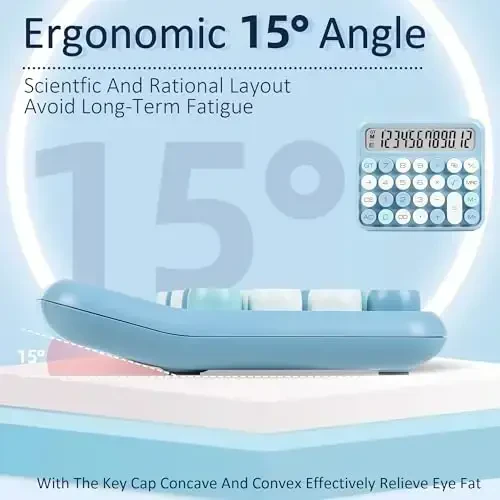 VEWINGL Mechanical Switch Calculator is a high-performance and stylish calculator designed for your daily life and basic office tasks. This calculator stands out with its 12-digit wide LCD screen and special key design that mimics the mechanical key feel. Every time you press the keys, you experience the satisfying click sound and feel of mechanical keyboards, making calculations more enjoyable. With its large keys and sweet colors, it appeals to your eyes and provides ease of use. The 12-digit wide LCD screen displays numbers clearly and legibly. The vertical back design and 15-degree angle minimize eye strain even during long-term use. VEWINGL Mechanical Switch Calculator is not just a calculator, but also a stylish accessory that adds a retro touch to your workspace. Its typewriter-style clean lines and round keys make a nostalgic reference to the past while bringing modern technology together. The thick body is suitable for both desktop use and hand-held carrying. The round keycaps ensure that your fingers fit comfortably and prevent fatigue during long-term use. Its spring-loaded ergonomic design supports your wrist for a more comfortable experience. With various color options such as yellow and black, pink and white, green and white, white and black, the VEWINGL Mechanical Switch Calculator appeals to every taste. Thanks to its small and portable design, it can be easily used at home, school, office, or store. In addition to basic mathematical operations, it also supports various financial functions. It is an excellent choice for adults and students. The stylish gift box design offers a wonderful gift option that you can give to your loved ones on special occasions. Made of high-quality ABS plastic material, the VEWINGL Mechanical Switch Calculator is lightweight and durable. Its reasonable configuration and comfortable use make your calculation operations easier. The automatic shutdown feature extends battery life, while independent memory, M+, M-, total (GT), delete key (→), square root (√ ̄), and percentage (%) functions help you handle your work more efficiently. The non-slip base prevents slipping during use and provides a safer experience. It runs on only one AAA battery and automatically turns off after 10 minutes of inactivity, saving battery power.