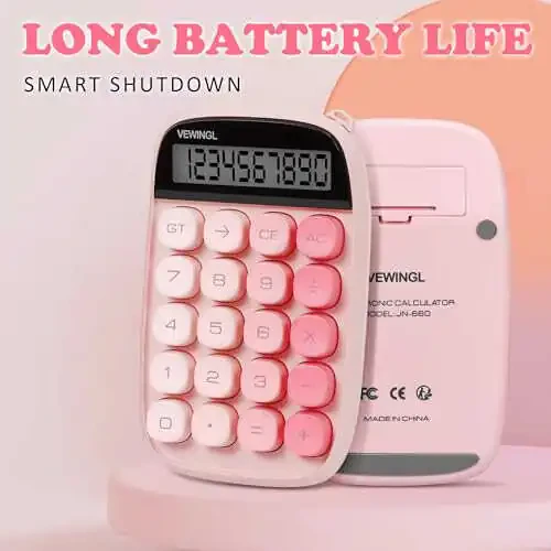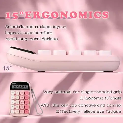 VEWINGL mexanik kalitli kalkulyator, pushti kalkulyator yoqimli 10 raqamli katta LCD displey va tugmalar, katta LCD displeyli kalkulyator kundalik hayot va oddiy ofis ishlari uchun a'lo