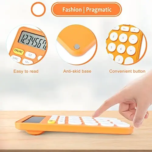 Стандартный калькулятор VEWINGL - это 12-разрядный настольный калькулятор с большим ЖК-дисплеем и большими кнопками, идеально подходящий для использования в офисе, школе, дома и на работе. Автоматический спящий режим продлевает срок службы батареи и обеспечивает длительное использование. Благодаря портативному размеру (5,5 x 3,4 дюйма) его легко носить в кармане или сумке. Благодаря легкой конструкции его можно брать с собой куда угодно и использовать, когда вам это нужно. Большой и легко читаемый ЖК-экран, вертикальная задняя конструкция и угол наклона 15 градусов позволяют легко видеть цифры. Большие кнопки и дизайн в пастельных тонах делают его приятным в использовании. Изготовлен из прочного АБС-пластика и доступен в различных модных цветах (желто-белый, розово-белый, оранжево-белый, чисто белый, чисто зеленый), чтобы вы могли выбрать вариант, соответствующий вашему стилю. Небольшой и портативный, он подходит для общего использования дома, в школе, офисе или магазине и позволяет легко выполнять основные математические операции. Кроме того, он имеет различные финансовые функции, что делает его отличным инструментом для взрослых и студентов. Калькулятор VEWINGL обеспечивает тактильные ощущения и удобство использования благодаря долговечным силиконовым кнопкам. Пластик ABS поддерживает легкость. Разумное расположение кнопок, удобное использование, автоматическое выключение, независимая память (M+, M-), клавиша суммирования (GT) и клавиша удаления (▶) облегчают вашу работу. Нескользящая конструкция предотвращает скольжение во время работы. Стандартный калькулятор VEWINGL предназначен для того, чтобы ровно стоять на столе, прилавке или столе, что облегчает его использование. Благодаря компактной конструкции его можно носить с собой даже в дороге. Независимо от того, считаете ли вы счета дома, решаете ли математические задачи в школе или выполняете ли бизнес-расчеты в офисе, стандартный калькулятор VEWINGL всегда будет вашим надежным помощником. Этот калькулятор, рассчитанный на срок службы до двух лет, является долгосрочной инвестицией.