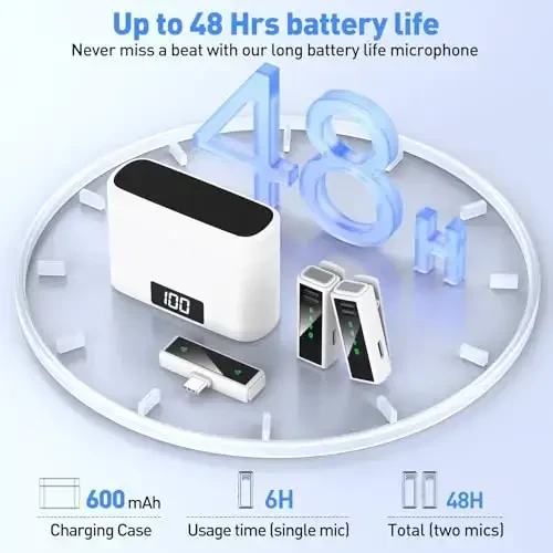 VEZQUA Wireless Lavalier Microphone is a professional solution designed for iPhone 15, Android, PC, and Laptop users, offering superior sound quality and ease of use. This mini microphone is ideal for video recording, vlogs, YouTube content, and TikTok videos. Thanks to its advanced noise cancellation feature, it allows you to record studio-quality audio in all kinds of environments, from crowded offices to outdoor settings. The crystal-clear sound capture feature records even the finest details of your voice while minimizing ambient noise. VEZQUA Wireless Lavalier Microphone offers versatile usage options. You can adapt to different environments with noise cancellation and natural sound modes. You can enrich your recordings with mute function and reverb sound effects. Intuitive LED indicators provide clear information about power, pairing status, mute status, and noise reduction status, allowing you to easily control the sound. Extended battery life is ideal for long recordings. The 600mAh charging case includes dual mini microphones, each providing up to 6 hours of continuous use. This provides a total battery life of up to 48 hours. This feature, which offers uninterrupted recording, provides a great advantage, especially for long shoots. VEZQUA Wireless Lavalier Microphone does not require Bluetooth or APP connection thanks to its plug-and-play feature. 2.4GHz wireless technology provides a more stable and convenient connection. Android users must enable the On-The-Go (OTG) function from settings before using it. Thanks to its wide compatibility feature, it is compatible with Android phones (Samsung/Google Pixel series, etc.), iPhone 15/16 series, laptops and computers. The lavalier microphone is a perfect solution for vlogging, interviews, live broadcasts and online meetings. Achieve professional sound quality with VEZQUA and take your content to the next level. Please note: This microphone does not support iPhone 5-14 models.