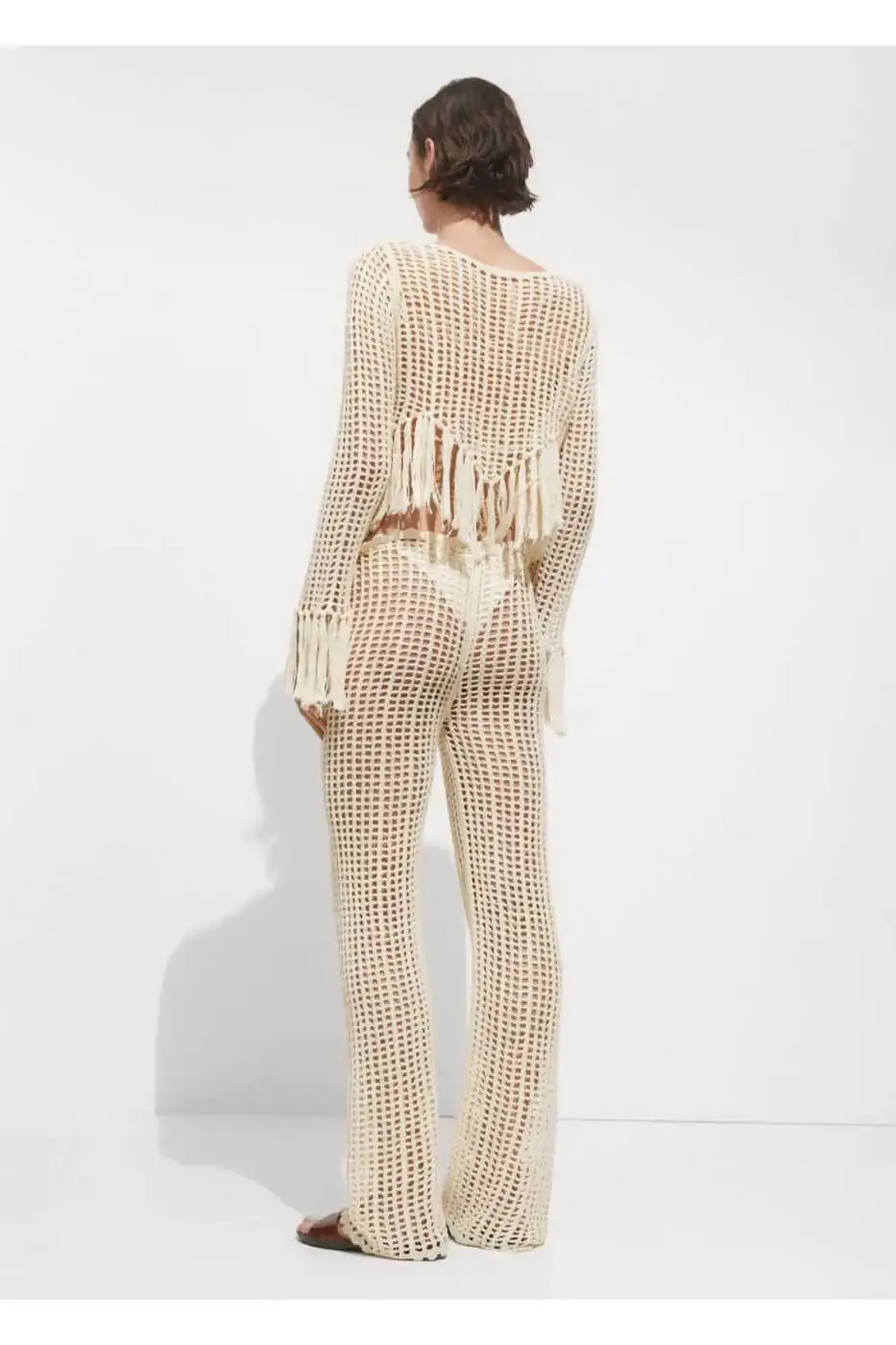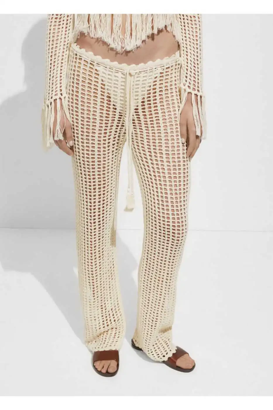 **Перфорированные трикотажные брюки**Встречайте новинку от Trendyol — перфорированные трикотажные брюки! Приготовьтесь блистать с этим потрясающим дополнением к вашему гардеробу.**Особенности продукта:*** **Хлопчатобумажная смесовая ткань:** Мягкая и дышащая для комфорта в течение всего дня.* **Трикотаж средней плотности:** Идеально подходит для переходных сезонов.* **Регулярная талия:** Удобно сидит на вашей естественной талии.* **Длинный:** Удлиняет ваши ноги для изящного и стильного образа.* **Прямой крой:** Универсальный и легко сочетается с любым нарядом.* **Перфорированный дизайн:** Добавляет воздушной легкости.* **Эластичный пояс с завязкой:** Обеспечивает идеальную посадку и дополнительный комфорт.**Материал и размеры:*** 56% полиэстер, 44% хлопок* Длина по внутреннему шву: 78,5 см* Длина бокового шва: 106,5 см**Инструкции по уходу:*** Ручная стирка в холодной воде (макс. 30°C)* Не отбеливать* Гладить при низкой температуре (макс. 110°C)* Не подвергать химической чистке* Не сушить в стиральной машинеНаслаждайтесь душевным спокойствием с нашей 15-дневной бесплатной политикой возврата. Для получения более подробной информации, пожалуйста, ознакомьтесь с нашими условиями возврата.