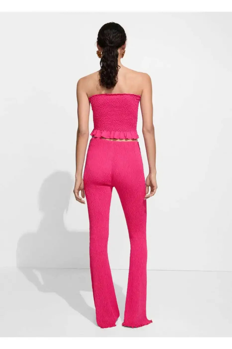 С **вязанной текстурой средней плотности** они обеспечивают как стиль, так и комфорт. Дизайн с **обычной талией** и **удлиненной длиной** подходит для всех типов телосложения. **Клеш** брючины придают элегантность и женственность.