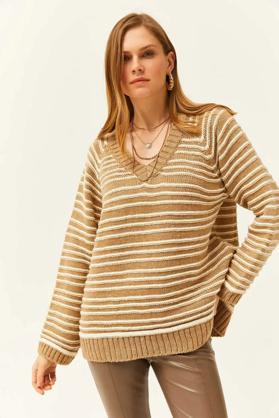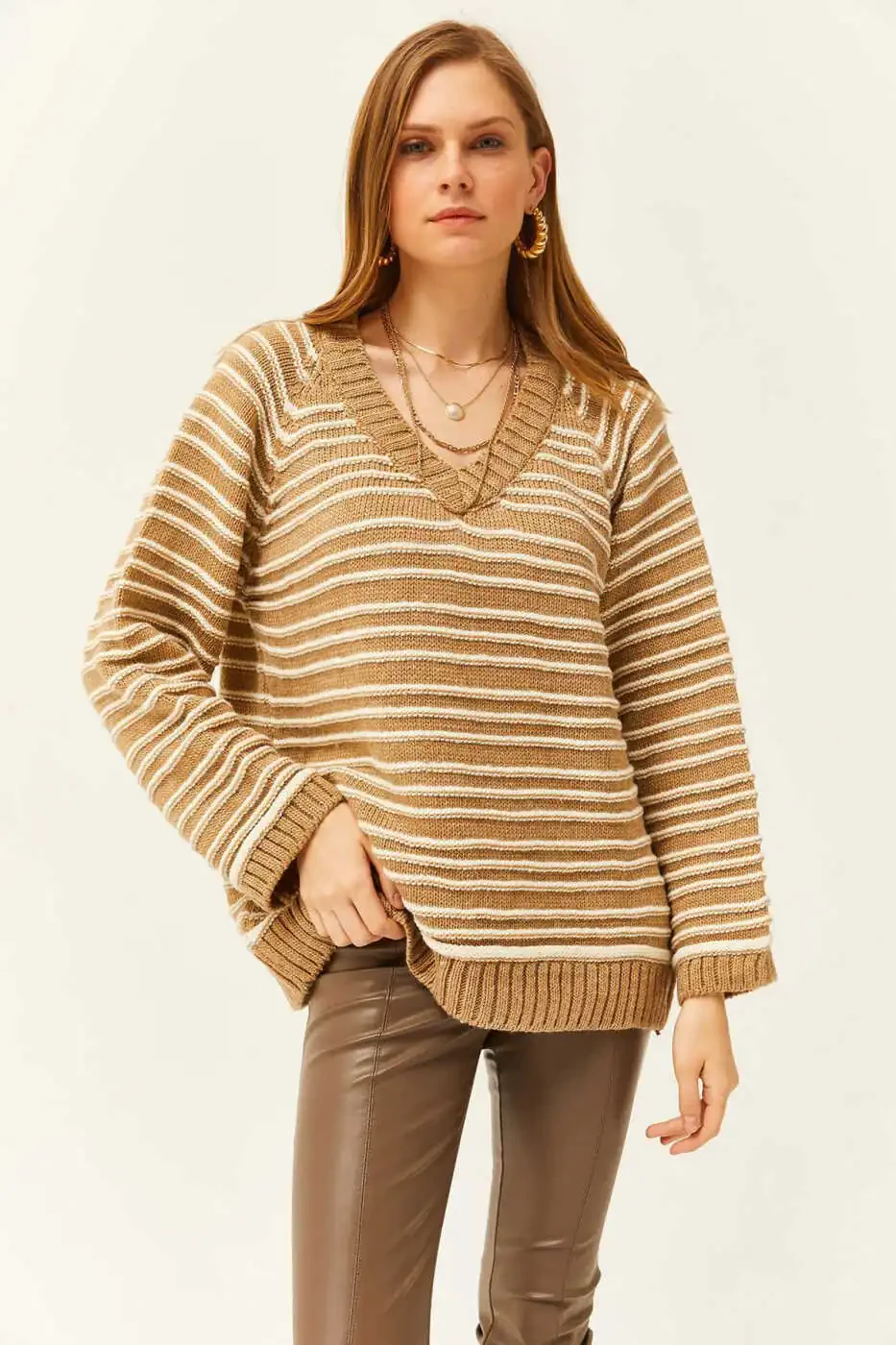 **Женский вязаный свитер с V-образным вырезом и полосатым узором KZK-19000739**Этот мягкий и удобный вязаный свитер с V-образным вырезом идеально подходит для повседневного использования, обеспечивая тепло и стиль в зимние месяцы. Изготовленный из акрилового материала, он сохраняет тепло тела и согревает в холодную погоду.Благодаря облегающему крою, который подходит для всех возрастных групп, он обеспечивает как свободу движений, так и стильный внешний вид. Сочетание однотонного цвета и полосатого узора создает простой, но шикарный образ. Кроме того, он прост в уходе, что делает его идеальным для длительного использования.**Особенности продукта:*** Мягкая и приятная на ощупь текстура* V-образный вырез* Полосатый узор* Акриловый материал* Подходит для всех возрастов* Свобода движений* Простота в уходе* Однотонный цвет и полосатый узорЗаказывайте с уверенностью благодаря нашей 15-дневной политике бесплатного возврата. С этим незаменимым вязаным свитером для ваших стильных и комфортных образов вы можете провести зимние месяцы как в тепле, так и в стиле.