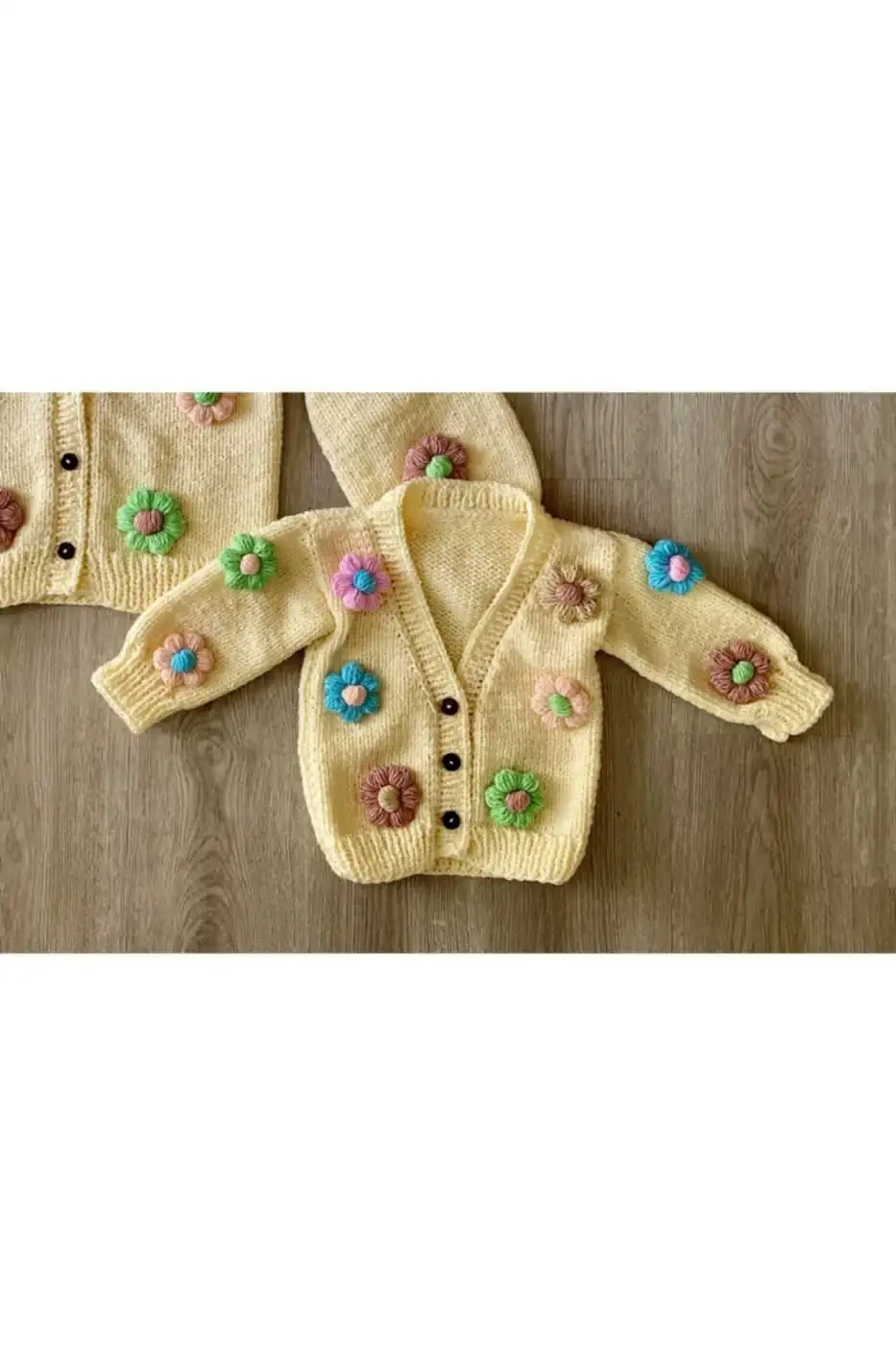 Познакомьтесь с вязаным вручную детским кардиганом с ромашками, созданным, чтобы дополнить стиль вашего малыша! Тщательно связанный из хлопковой пряжи, этот кардиган обеспечивает мягкое и комфортное прикосновение к нежной коже вашего ребенка. Изящный вид ромашек добавляет кардигану милый шарм, делая вашего малыша еще милее.