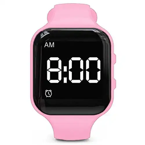 vibrating alarm watch, waterproof alarm watch, silent alarm watch, medical reminder watch, wake up watch, timer, 15 daily alarms, pink square, waterproof