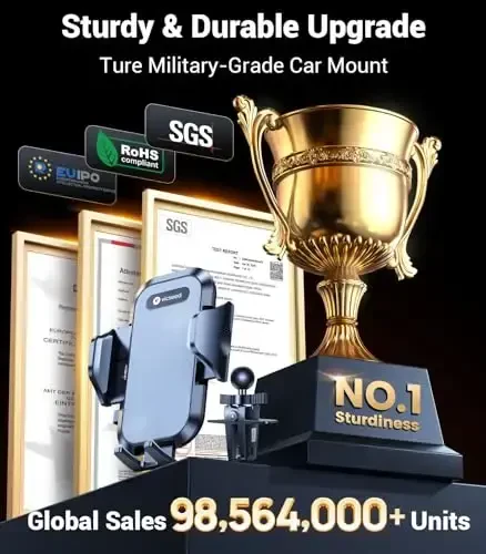 【2025 Newly Upgraded Car Phone Holder】After 10 years of technology iteration, Vicseed car phone holder adopts aerospace material PTFE, say goodbye to the trouble of high temperature deformation and falling off of plastic car mount.Built-in metal air vent clips and silicone panels not only increase stability by 300%, but also protect your phone and car vents.The world's first extreme-tested cell phone car mount, trusted by 9.5 million car owners worldwide 【 Double lock Metal Vent Clip-Never Drop&Never Break】: This car vent phone mount is made of air vent clip with 3 times wider contact surface and non-slip silicone, which not only improves the stability by 300% compared with single hook holder, but also disperses the pressure of the blades and protects your air vents . Built-in metal, never break. Whether it's a sharp turn or bumpy road, the iPhone car mount will not fall off 【Easy to Adjust&Unblocked View】: This car cell phone holder uses a military-grade ball joint that can switch horizontal and vertical viewing angles (360°rotation), making navigation and calls more convenient. Unlike traditional windshield or dashboard phone stand for car, this air vent phone holder will not block your view, making your driving safer 【Lock Your Cell Phone Securely】: The clamp arms and non-slip silicone feet of the car phone holder mount form a unique triangular support structure, which is 100% more stable than traditional footless car holder for iPhone. Even on the highway, this car iPhone holder can firmly hold your phone 【Universal Compatibility】: This car phone mount fits horizontal/vertical/square air vent (99.9% of car models). Equipped with extra-wide adjustable arms, it is suitable for all smartphones (4.0-7.2 inches), and can hold even the thickest phone cases (such as otterbox cases) firmly. Designed for iPhone, Android, Samsung and other smartphones. 【Excellent Design】: This phone holder for car adopts an oversized side button design, which solves the problem that the buttons on the back of traditional car cellphone holders are difficult to find. The panel of the hands free phone mount for car is wrapped with unique thickened silicone, which completely solves the problem that traditional hard plastic phone car cell phone mount holders are easy to scratch and noisy