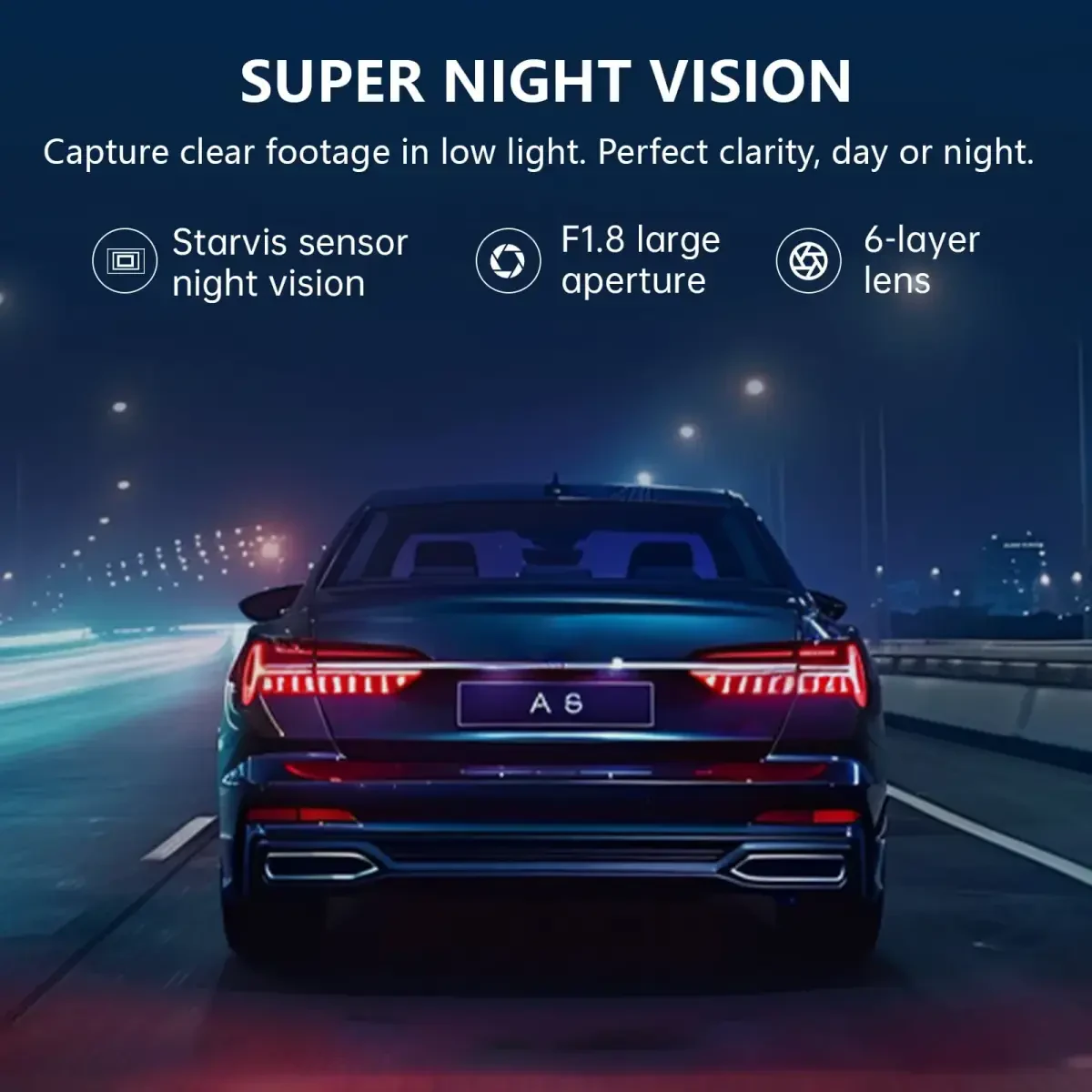 - Превосходная передняя камера 4K Ultra HD + задняя камера 1080P: Передняя камера записывает видео в разрешении 4K (2160P), задняя камера — в разрешении 1080P. Номерные знаки, дорожные знаки и другие важные детали записываются четко и разборчиво.
