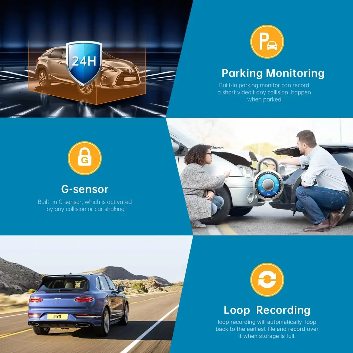 Campark Dual Dash Cam 1080P — это двухлинзовый видеорегистратор с GPS-трекером, ночным видением, режимом парковки, циклической записью и G-сенсором, предназначенный для использования внутри автомобиля и на лобовом стекле. Эта камера является идеальным решением для повышения безопасности вождения и предоставления доказательств в случае возможных происшествий. Благодаря записи высокого разрешения 1080P вы получаете четкие и детализированные изображения как днем, так и ночью. Встроенный GPS отслеживает ваше местоположение, скорость и маршрут, а функция ночного видения обеспечивает четкую запись даже в темноте. Режим парковки обеспечивает наблюдение, даже когда ваш автомобиль припаркован, и автоматически начинает запись при обнаружении любого удара или движения. Циклическая запись позволяет непрерывно записывать, перезаписывая старые записи, когда карта памяти заполнена. G-сенсор автоматически блокирует запись при резком торможении или столкновении, предотвращая ее удаление. Campark Dual Dash Cam 1080P — отличный выбор для водителей Uber, Lyft, такси и тех, кто совершает длительные поездки. Он также повышает безопасность вождения при ежедневном использовании и предоставляет доказательства в случае возможных споров. Благодаря компактному дизайну он вписывается в интерьер вашего автомобиля и легко устанавливается. С помощью HIT GPS Player вы можете просматривать записи на своем компьютере, изучать информацию о местоположении и детально анализировать свои поездки.