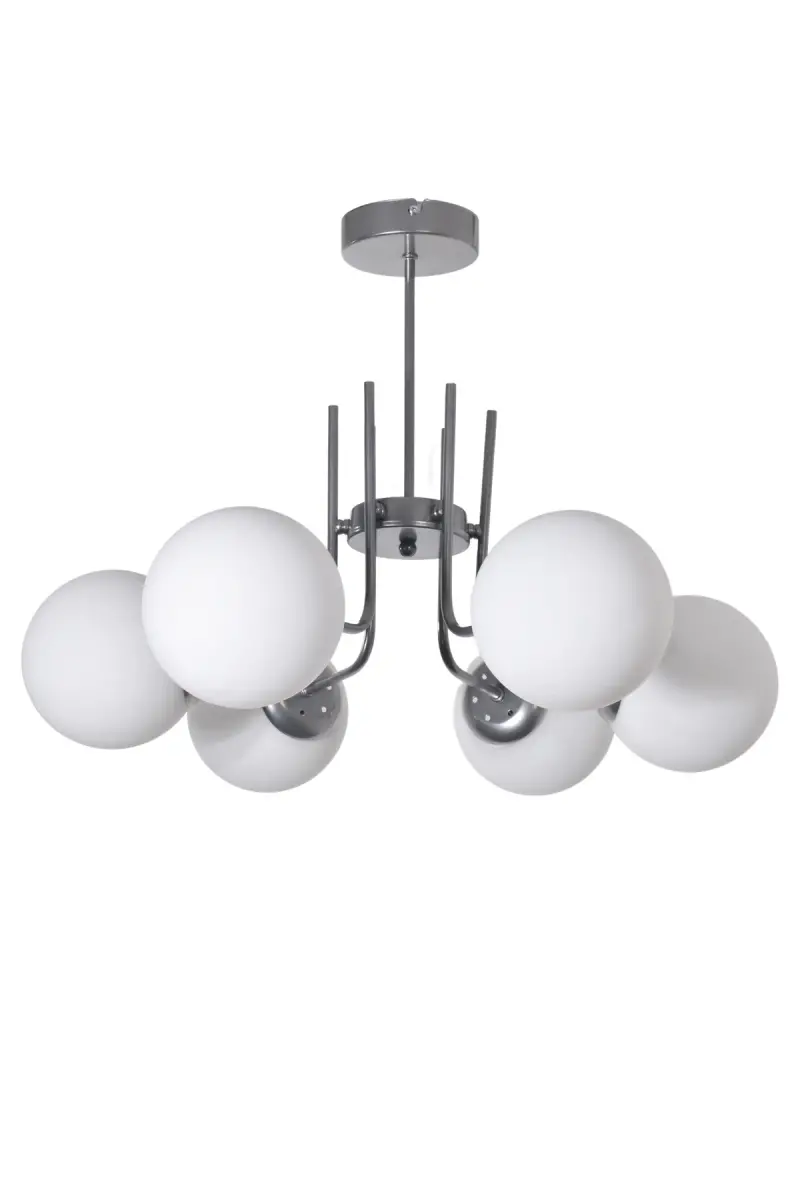 Vien Modern Design Living Room Dining Room Kitchen Gray Color White Glass Pendant 6-Light Chandelier is designed to add a modern touch to every corner of your home. This stylish chandelier completely changes the atmosphere of the space, especially when used in areas such as the living room, dining room, and kitchen. The harmony of gray and white colors gives the chandelier an elegant and sophisticated look, while the glass details allow the light to spread into the environment, providing a spacious lighting. The Vien chandelier is not just a lighting tool, but also a decoration object that adds value to your home.One of the most prominent features of this chandelier is its modern design. Its simple and stylish lines are designed in accordance with today's trends. The gray color gives the chandelier a modern feel, while the white glass details complete the elegance. This color combination makes the chandelier a versatile piece that can adapt to different decoration styles. Whether you adopt a minimalist style or have a more flamboyant decoration understanding, the Vien chandelier can easily adapt to any environment.The chandelier consists of 6 pendant lamps, which can adequately illuminate even large areas. Since the height of the pendants is adjustable, you can customize the chandelier as you wish. For example, you can provide focused lighting by positioning it closer to the dining table or obtain general lighting by hanging it in the middle of the living room. The glass material allows the light to spread softly and warmly, adding an inviting atmosphere to your space.The Vien chandelier, which is also very easy to install, can be ready for use in a short time. The fact that the product is made of durable materials offers a long-lasting use. Cleaning the chandelier is also very practical. You can simply wipe it with a damp cloth to maintain its brightness as on the first day. Vien Modern Design Pendant Chandelier will be an indispensable part of your home with its aesthetic appearance and functional features.