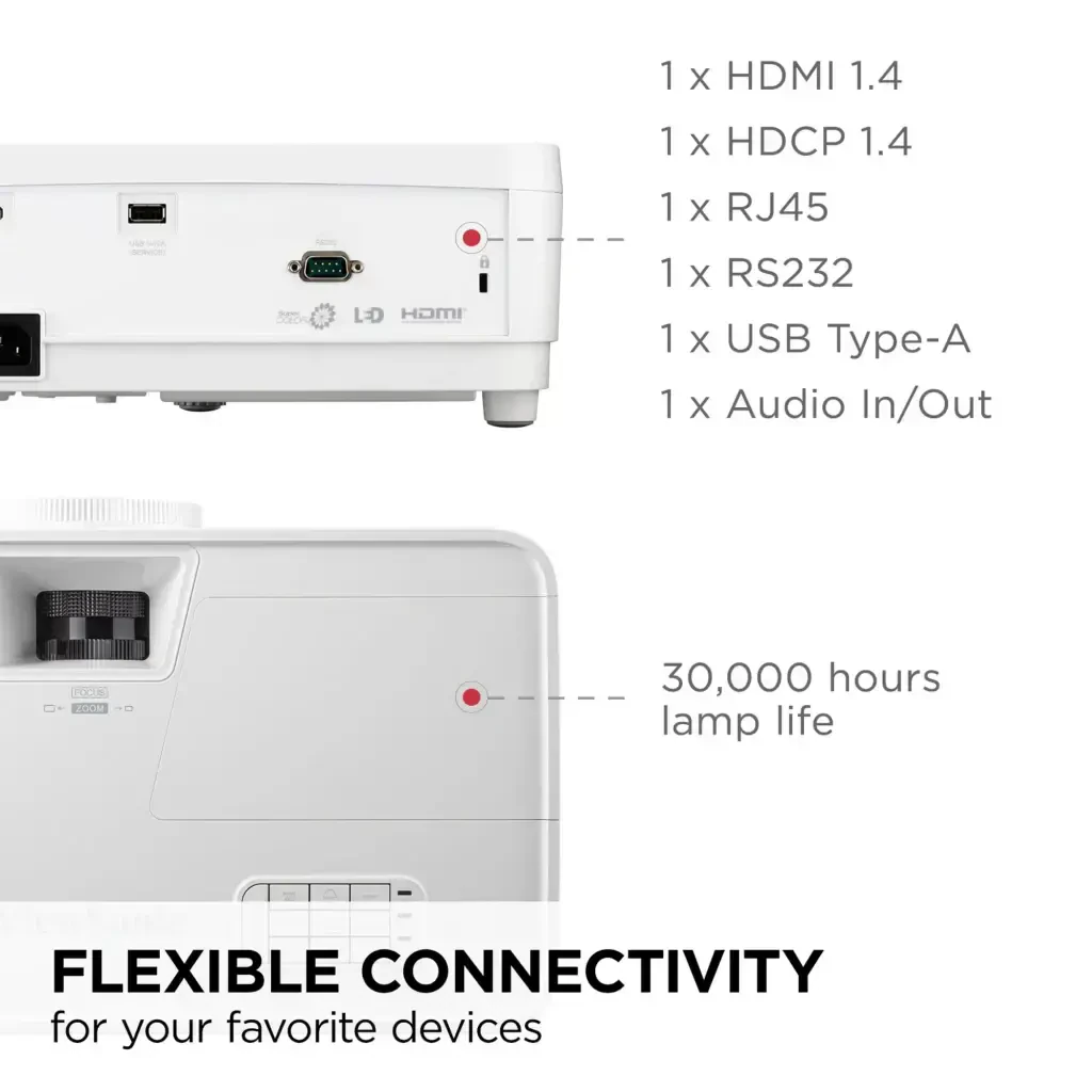 Ekologik ViewSonic LS510WH-2 WXGA proyektor, daha yorqin va jonli ekran uchun so'nggi LED texnologiyasidan foydalanadi. 3.000 ANSI lümen va murakkab chiroq almashtirishga ehtiyoj qolmaydi, LS510WH ham ta'lim, ham korxona tashkilotlari uchun tejamkor taqdimot echimidir. 125% Rec. 709 texnologiyasi bilan jihozlangan uzoq muddatli proektsiya yechimida idora xonalari, ma'ruzalar zallari va boshqa jamoat joylari uchun ajoyib ranglarga ega ajoyib tasvirlardan bahramand bo'ling. Tezkor yoqish/o'chirish, soddalashtirilgan dasturiy ta'minot yangilanishlari va moslashuvchan o'rnatish kabi qulay xususiyatlardan foydalaning.