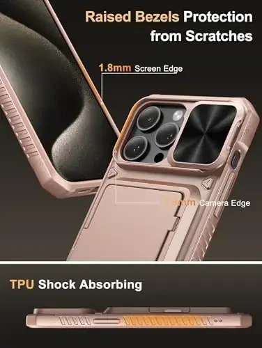 The Vihibii iPhone 15 Pro Max case not only stores your cards but also protects your camera. The newly designed sliding camera lens protector cover is 2mm thick and has a sensitive sliding rail system. When you are not using the camera, you can simply slide the cover in a second to close the lens and protect your iPhone 15 Pro Max's camera lens from scratches and damage. This feature provides a great advantage, especially for those with an active lifestyle.