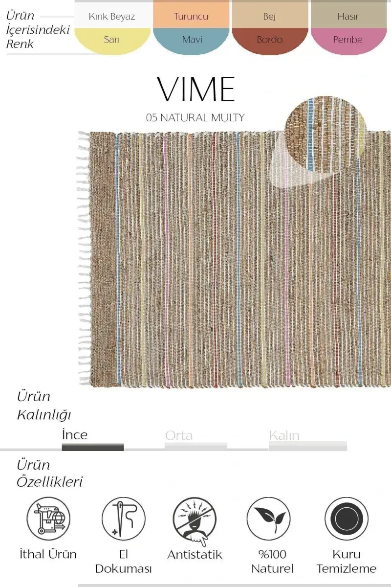Vime 05 Natural Multi Jüt Halı Yolluk ile yaşam alanlarınıza sıcaklık, doğallık ve özgünlük katmaya hazır olun. Bu el dokuması jüt kilim, sadece bir halı değil, aynı zamanda bir sanat eseridir. Her bir ilmeği özenle dokunmuş, her bir deseni titizlikle işlenmiş bu özel tasarım, evinizin atmosferini tamamen değiştirecek. Jüt malzemenin kendine has dokusu, halıya benzersiz bir karakter kazandırırken, doğal renklerin harmonisi mekanınıza huzur ve dinginlik getirecek. Bohem tarzın vazgeçilmezi olan bu halı, etnik desenleri ve otantik görünümü ile modern ve geleneksel dekorasyon stillerine mükemmel bir şekilde uyum sağlar. İster salonunuzda, ister yatak odanızda, ister koridorunuzda kullanın, Vime 05 Natural Multi Jüt Halı Yolluk, her köşeye sıcaklık ve samimiyet katacaktır. Hasır halı görünümü, doğal ve rustik bir hava yaratırken, renkli detaylar mekana enerji ve canlılık katar. El dokuması olması, halının her birinin kendine özgü olmasını sağlar, böylece evinizde benzersiz bir parça bulundurmanın keyfini yaşarsınız. Jüt, doğal bir lif olduğu için çevre dostudur ve sağlıklı bir yaşam alanı yaratmanıza yardımcı olur. Ayrıca, jüt liflerinin dayanıklılığı sayesinde, halınız uzun yıllar boyunca ilk günkü gibi kalır. Vime 05 Natural Multi Jüt Halı Yolluk, sadece görsel olarak değil, aynı zamanda kullanım açısından da konfor sunar. Yumuşak dokusu, ayaklarınıza masaj yapar gibi bir his verirken, kaymaz tabanı sayesinde güvenli bir kullanım sağlar. Evcil hayvanlarınız ve çocuklarınız için de ideal bir seçenektir. Bu halı, evinizin dekorasyonunu tamamlayan ve yaşam kalitenizi artıran bir yatırımdır. Vime 05 Natural Multi Jüt Halı Yolluk ile evinizde bohem bir rüzgar estirin, doğal güzelliklerin tadını çıkarın ve kendinizi özel hissedin.