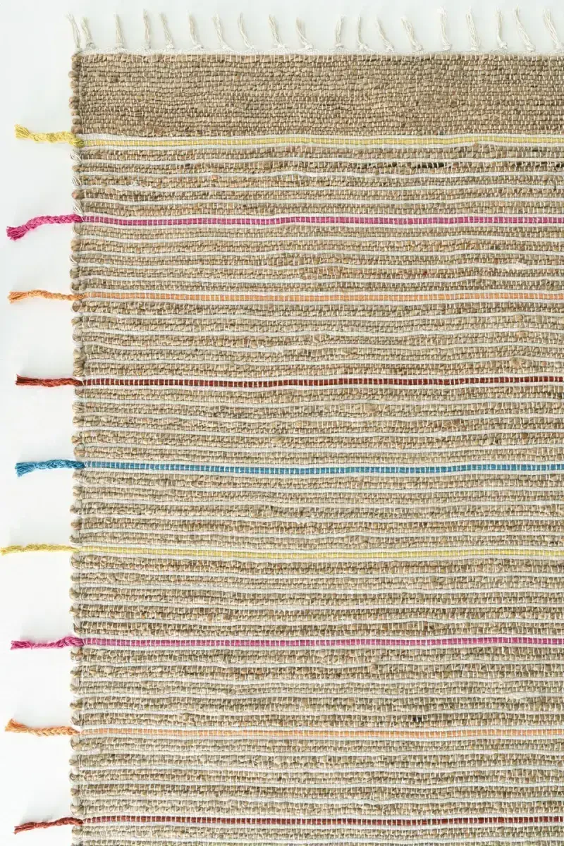 Vime 05 Natural Renkli Saçaklı Jüt Halı, evinize doğal bir dokunuş ve otantik bir hava katacak el dokuma jüt kilimdir. Cool Halı tarafından sunulan bu özel tasarım halı, yüksek kaliteli jüt ipliği kullanılarak üretilmiştir ve evin her köşesine sıcaklık ve şıklık getirir. Saçaklı detayları ve renkli deseni ile dikkat çeken bu halı, hem modern hem de geleneksel dekorasyon tarzlarına uyum sağlar. El dokuma olması, her bir halının benzersiz ve özel olmasını garanti ederken, jütün doğal yapısı sayesinde de uzun ömürlü ve dayanıklıdır. İthal olan bu halı, antistatik özelliği sayesinde toz ve alerjenleriMinimum seviyede tutarak sağlıklı bir yaşam alanı sunar. Çift taraflı kullanılabilme özelliği sayesinde uzun ömürlüdür ve farklı desenleri kullanma imkanı sunar. Vime 05 Natural Renkli Saçaklı Jüt Halı, sadece bir halı değil, aynı zamanda evinize değer katan bir sanat eseridir. Ürünün renklerinde stüdyo çekimlerinden ve ekran çözünürlüklerinden kaynaklı ufak farklılıklar olabilmektedir. Kullanım alanınıza serildiğinde, paketlenmeden kaynaklı olası kat izleri zamanla düzelecektir.