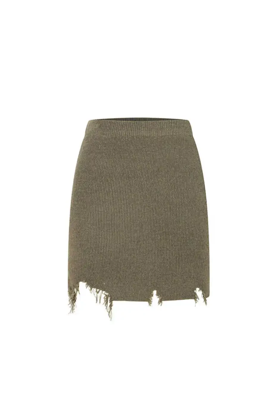 Experience style and comfort all in one with our distressed knit skirt, a must-have for your wardrobe! Its soft texture and comfortable fit will keep you feeling cozy all day long. This skirt adds a modern touch to your style with its unique distressed effects. Whether you choose it for everyday wear or special occasions, the distressed knit skirt offers both style and comfort to suit any occasion.