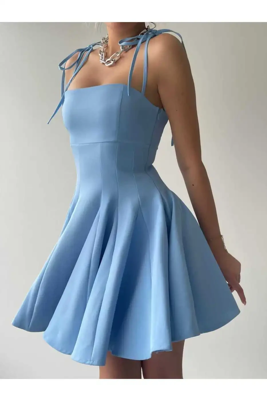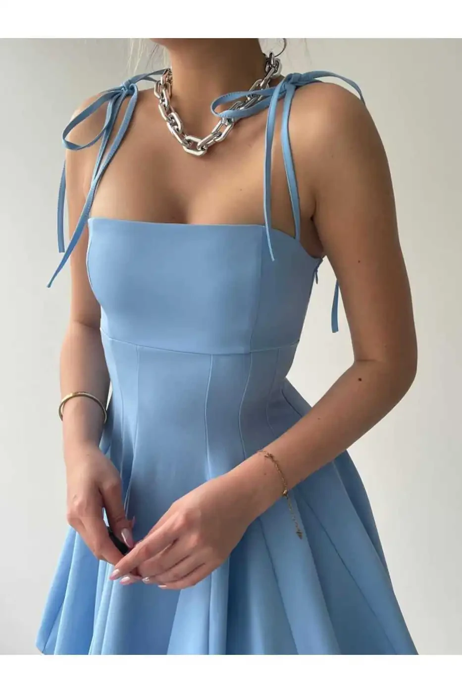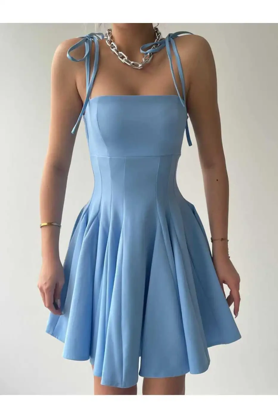 Violet Flared Mini Dress will be indispensable for your summer wardrobe! This cute and stylish dress will make you stand out in any setting. While its baby blue color emphasizes your innocence and elegance, its flared cut offers comfortable use without restricting your freedom of movement. Its mini length allows you to achieve an energetic and youthful look, and you can adapt it to both daytime and evening elegance with the right accessories.Product DescriptionCarry the energy of summer with the Violet Flared Mini Dress! The soothing tone of baby blue will perfectly match your skin and give you a fresh look. The flared cut adds freedom to your movements while highlighting your feminine silhouette. Whether it's a summer party, a casual outing, or a romantic dinner, this dress will take you to the peak of elegance in any setting. Thanks to its high-quality fabric, you will feel comfortable all day long. The light and breathable texture of the dress prevents you from sweating even in hot weather, keeping you fresh all day long. Violet Flared Mini Dress is not only stylish but also a versatile piece. You can create a bohemian style by completing it with sandals and a straw hat, or transform it into evening elegance with high heels and a stylish clutch. The baby blue color of the dress can be easily combined with different jewelries. Silver tones add a modern touch to the dress, while gold tones create a warmer and more romantic atmosphere. This dress is not just a piece of clothing, but also a form of expression. Whenever you want to feel free, energetic, and stylish, the Violet Flared Mini Dress will be the right choice for you. Don't miss this dress that is a candidate to be one of the most favorite pieces of your wardrobe! This dress, with every detail carefully designed, will give you not only a beautiful look but also self-confidence. Enjoy the summer with the Violet Flared Mini Dress!Product Features* Color: Baby Blue* Cut: Flared* Length: Mini* Style: Stylish and Casual* Fabric: High Quality and BreathableAdditional InformationThe model is wearing size S/36. Product content: 100% Cotton. Machine washable at 30 degrees. It is recommended to iron at low heat. Do not use bleach.