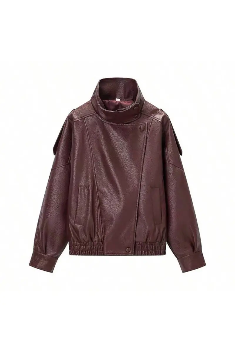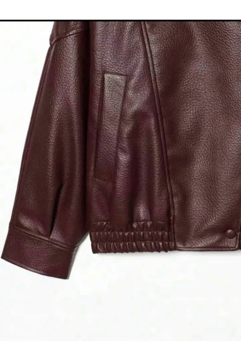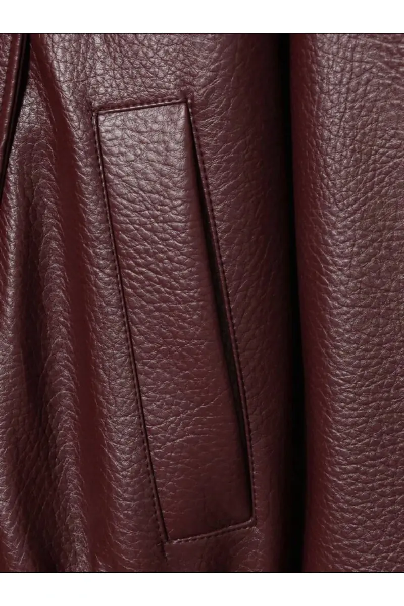 Viral Oversize Kadın Deri Ceket Yüksek Yaka Siyah Urban Style Kadın Deri Ceket-Bordo&Burgundyy