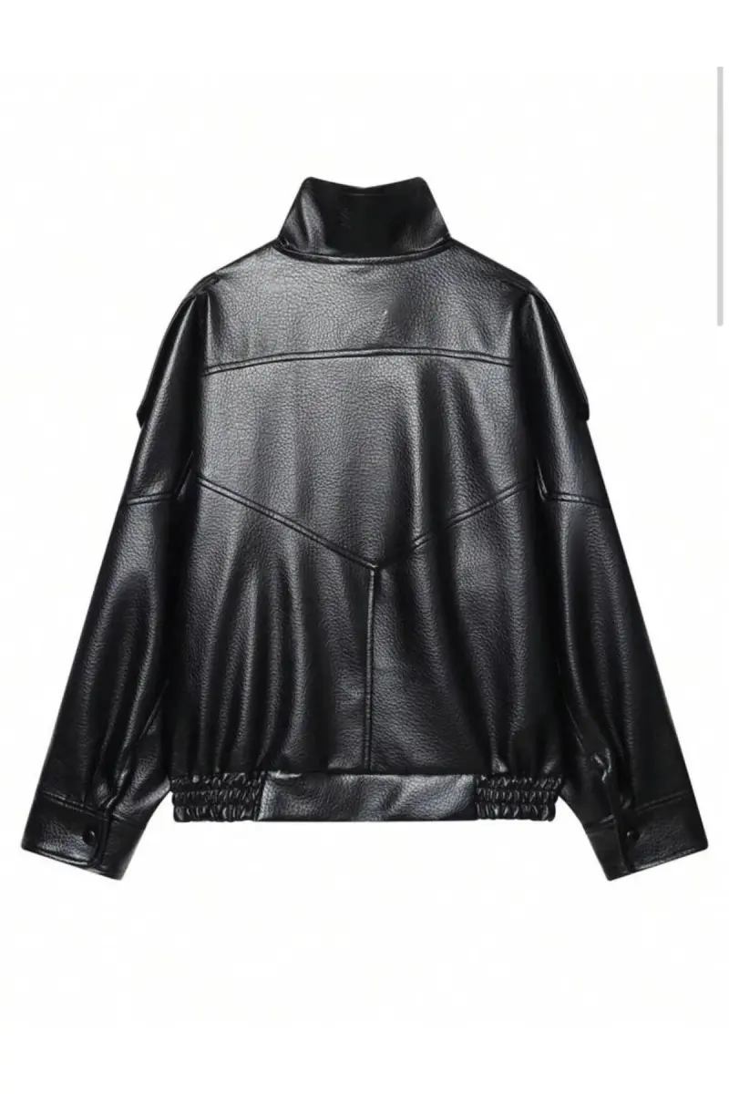 Viral Oversize Kadın Deri Ceket Yüksek Yaka Siyah Urban Style Kadın Deri Ceket-Siyah&Black