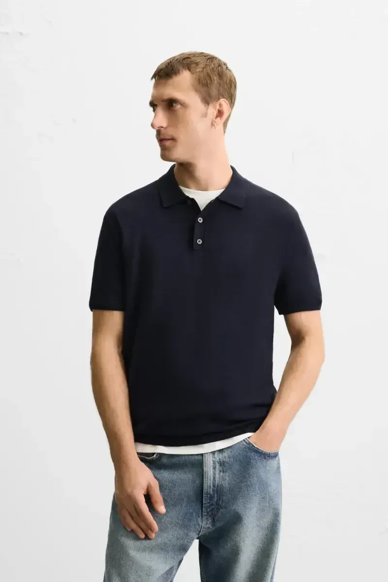 The VISCOSE BLEND KNIT POLO-NAVY is a must-have piece for your wardrobe, combining style and comfort. The soft texture and breathable nature of the viscose blend yarn offer all-day comfort. Its regular fit sits perfectly on your body without restricting movement. The classic polo collar design and button closure provide a chic and elegant look. The short sleeves help you stay cool in warm weather, while the ribbed finishes guarantee quality craftsmanship and long-lasting use. The navy color is a timeless option that complements any combination. You can easily wear this polo for everyday life or special occasions, adding a sophisticated touch to your style. Whether in job interviews, meetings with friends, or weekend outings, you'll always feel stylish and comfortable with the VISCOSE BLEND KNIT POLO-NAVY. Made from quality materials, this polo will retain its shape and color even after prolonged use, serving you for many years. By following the washing instructions, you can maintain its vibrant color and soft texture for a long time. Easily combinable with other clothes in your closet, the VISCOSE BLEND KNIT POLO-NAVY will always give you a stylish and modern look. It's the ideal choice for those seeking both comfort and style. You'll feel special with this polo! Produced with quality material selection and meticulous craftsmanship, this product will remain in your wardrobe for many years. With its timeless design and stylish color, it's a piece that will always reflect your style.