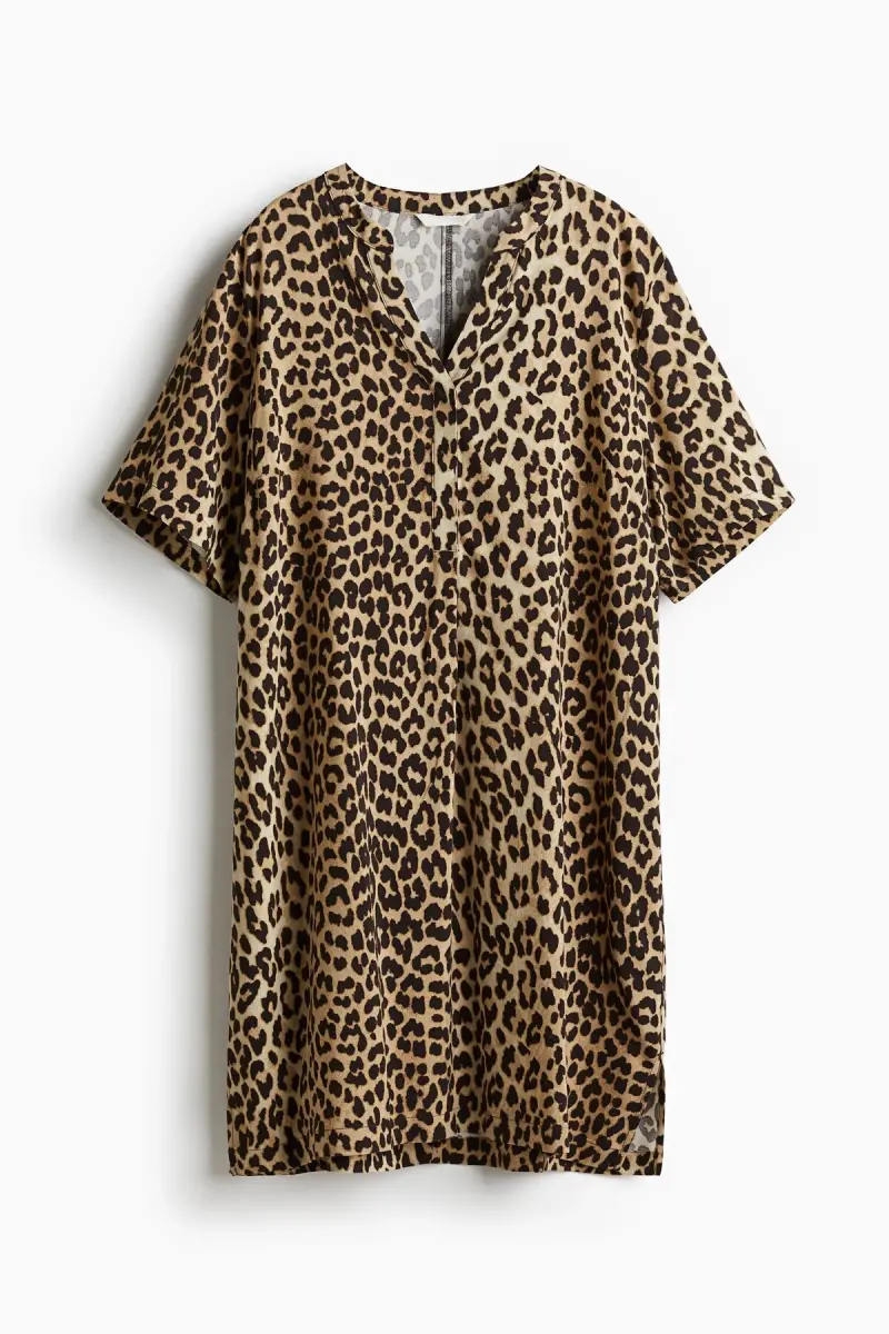 Experience elegance and comfort together with the Viscose Tunic Dress! The unique harmony of beige and leopard patterns adds a distinctive touch to this dress, while the long sleeves and V-neck design highlight your elegance. Ideal for daily use, this tunic dress offers freedom of movement all day long thanks to its relaxed fit. You can reflect your style by wearing it alone or combining it with different accessories. The light and breathable structure of the viscose fabric ensures comfortable use even in hot weather. This dress, which will be an indispensable part of your wardrobe, will both complete your daily elegance and accompany you in your special moments. The timeless charm of the leopard pattern and the calmness of the beige color make this dress a piece that can adapt to any environment. Whether at a lunch or an evening stroll, you will always be stylish and comfortable with the Viscose Tunic Dress. The quality of the fabric and the attention to detail in the stitching ensure that you can enjoy this dress for many years. This special design, which should definitely be in your closet, will bring a different breath to your style. The harmony of the leopard pattern and beige color will suit every skin tone and make you look more vibrant than you are. The Viscose Tunic Dress, which is a perfect choice for women who want both comfort and elegance, also stands out with its wearable structure in all seasons. You can prefer this dress alone in spring and summer, and combine it with cardigans or jackets in autumn and winter. This dress, which will make your style speak in every situation, is a candidate to be the most loved piece of your wardrobe. The V-neck detail makes your neck look longer and more elegant, while the long-sleeved design both complements the elegance and protects you in cool weather. In short, the Viscose Tunic Dress is an excellent option that combines elegance, comfort and usability.