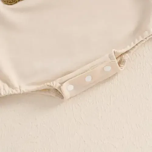 Please check the size chart before purchasing. You can create a fashionable look by combining the romper with a bow headband and hat. Machine washable. Do not iron.